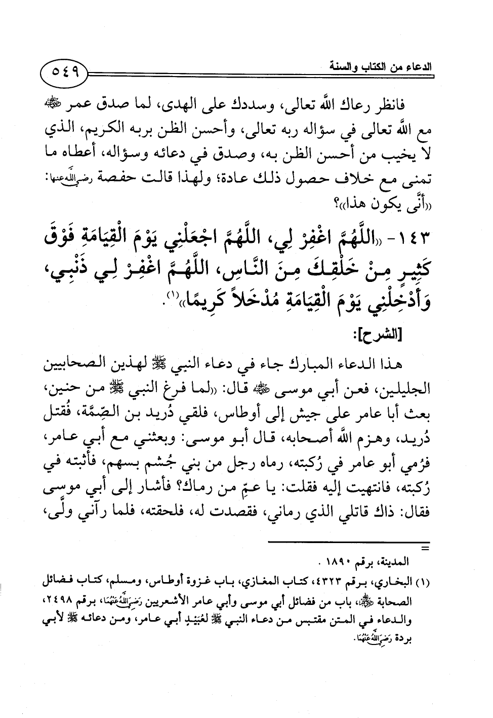 143 - ((اللَّهُمَّ اغْفِرْ لِي، اللَّهُمَّ اجْعَلْنِي يَوْمَ الْقِيَامَةِ فَوْقَ كَثِيرٍ مِنْ خَلْقِكَ مِنَ النَّاسِ، اللَّهُمَّ اغْفِرْ لِي ذَنْبِي، وَأَدْخِلْنِي يَوْمَ الْقِيَامَةِ مُدْخَلاً كَرِيمًا)) (¬2).