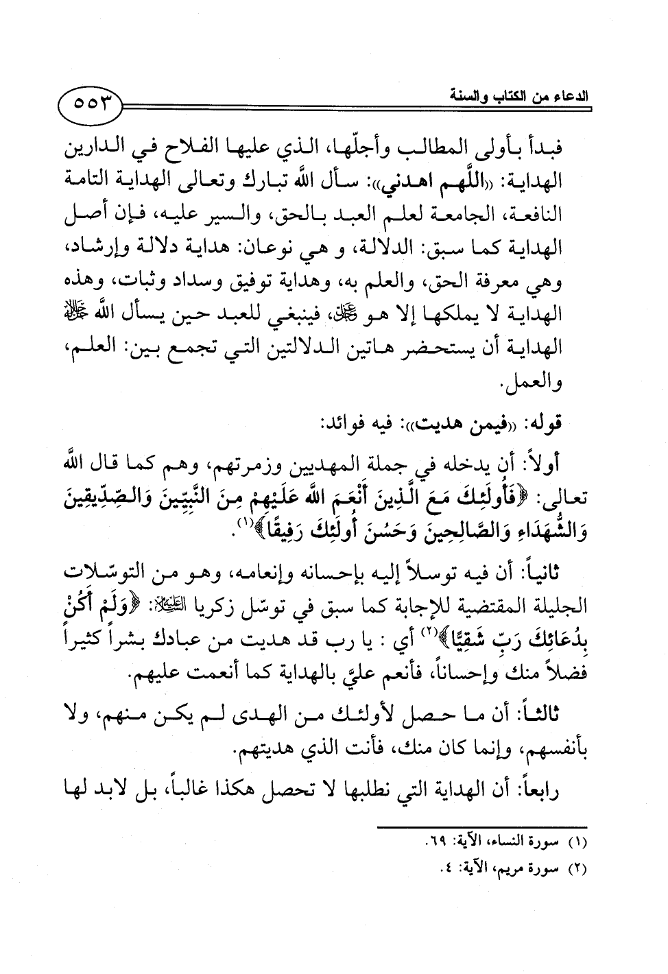 أولاً: أن يدخله في جملة المهديين وزمرتهم، وهم كما قال اللَّه تعالى: {فَأُولَئِكَ مَعَ الَّذِينَ أَنْعَمَ اللَّه عَلَيْهِمْ مِنَ النَّبِيِّينَ وَالصِّدِّيقِينَ وَالشُّهَدَاءِ وَالصَّالِحِينَ وَحَسُنَ أُولَئِكَ رَفِيقًا} (¬1).