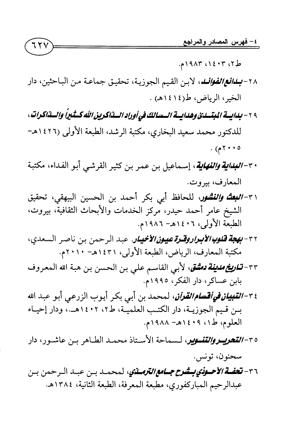 29 - بداية المبتدئ وهداية السالك في أوراد الذاكرين الله كثيراً والذاكرات، للدكتور محمد سعيد البخاري، مكتبة الرشد، الطبعة الأولى (1426هـ-2005م).