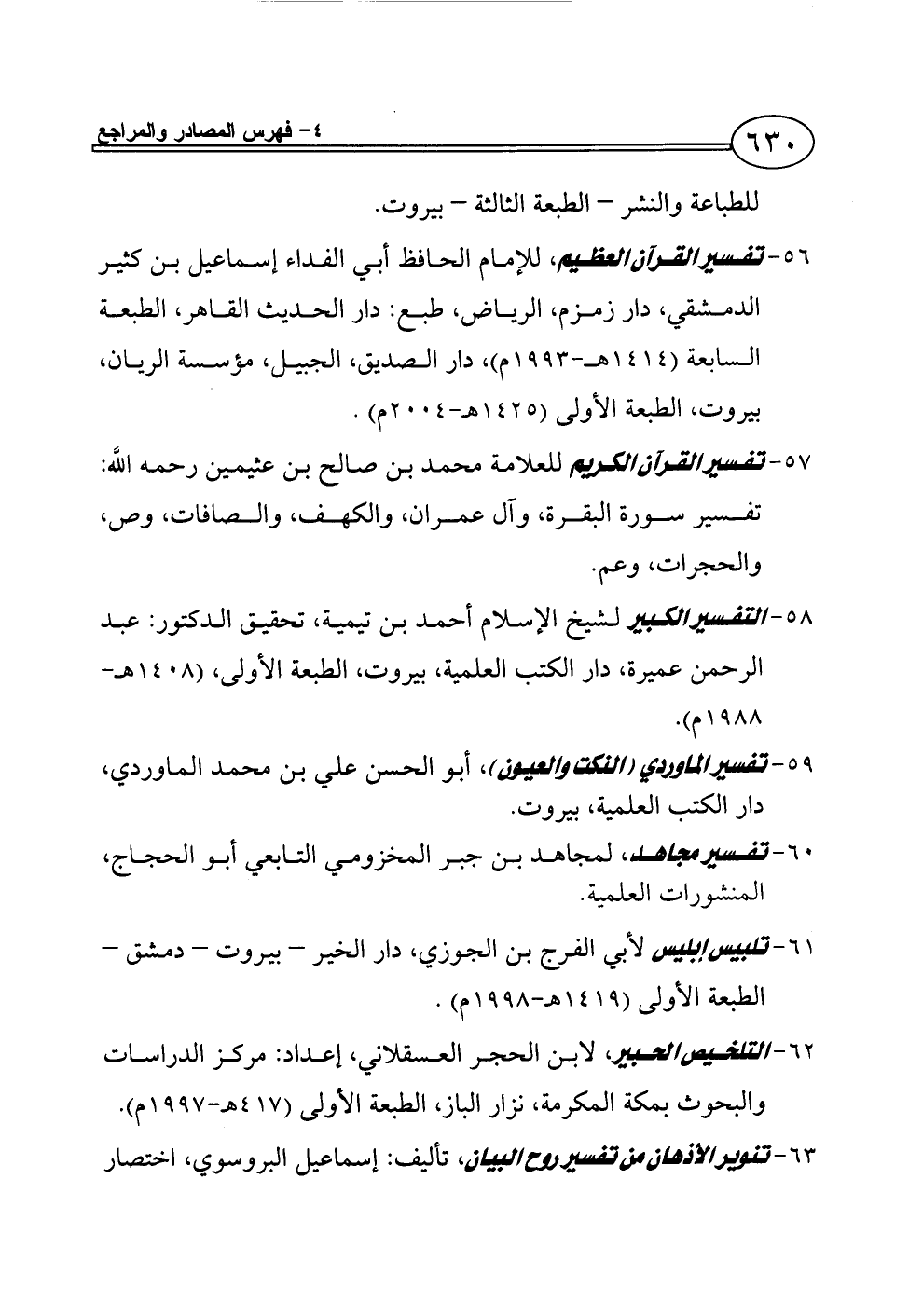 58 - التفسير الكبير لشيخ الإسلام أحمد بن تيمية، تحقيق الدكتور: عبد الرحمن عميرة، دار الكتب العلمية، بيروت، الطبعة الأولى، (1408هـ-1988م).