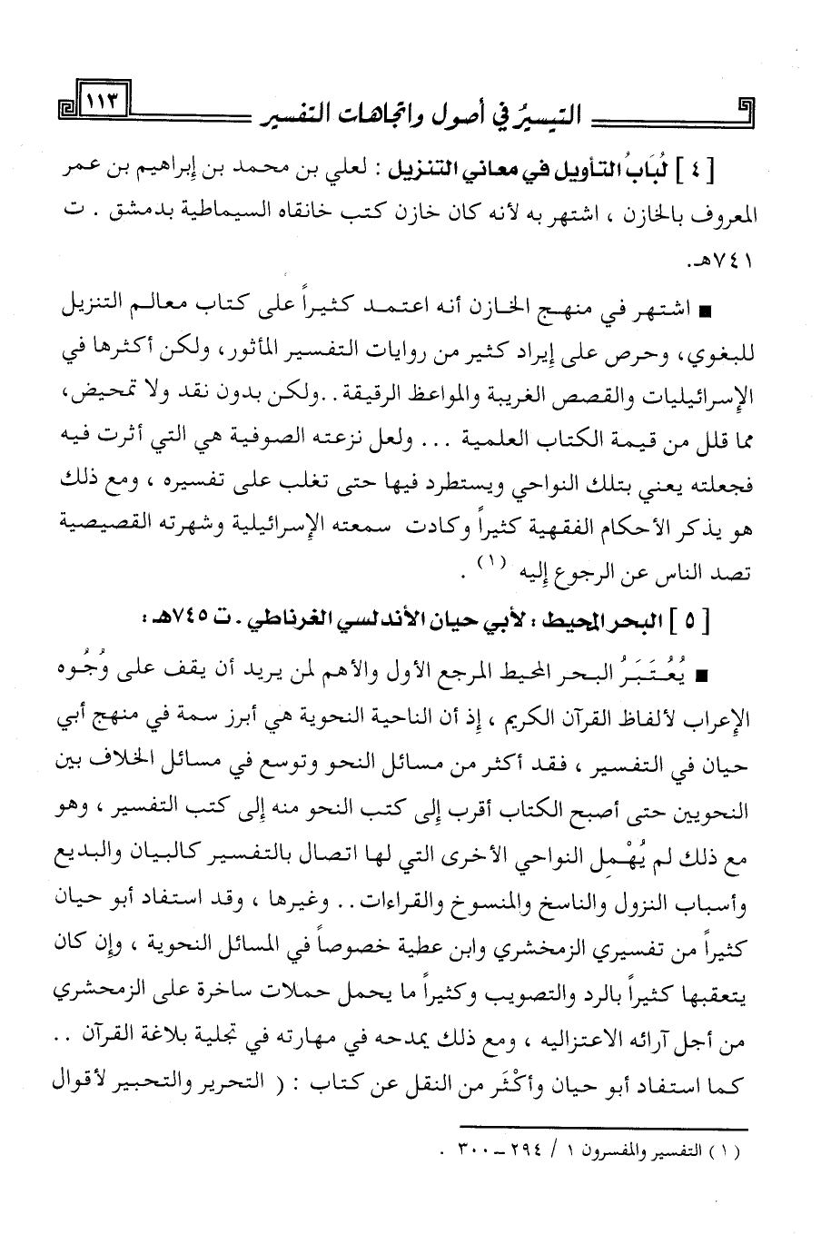 [4] لباب التأويل في معاني التنزيل: لعلي بن محمد بن إبراهيم بن عمر المعروف بالخازن، اشتهر به لأنه كان خازن كتب خانقاه السيماطية بدمشق. ت 741 هـ.