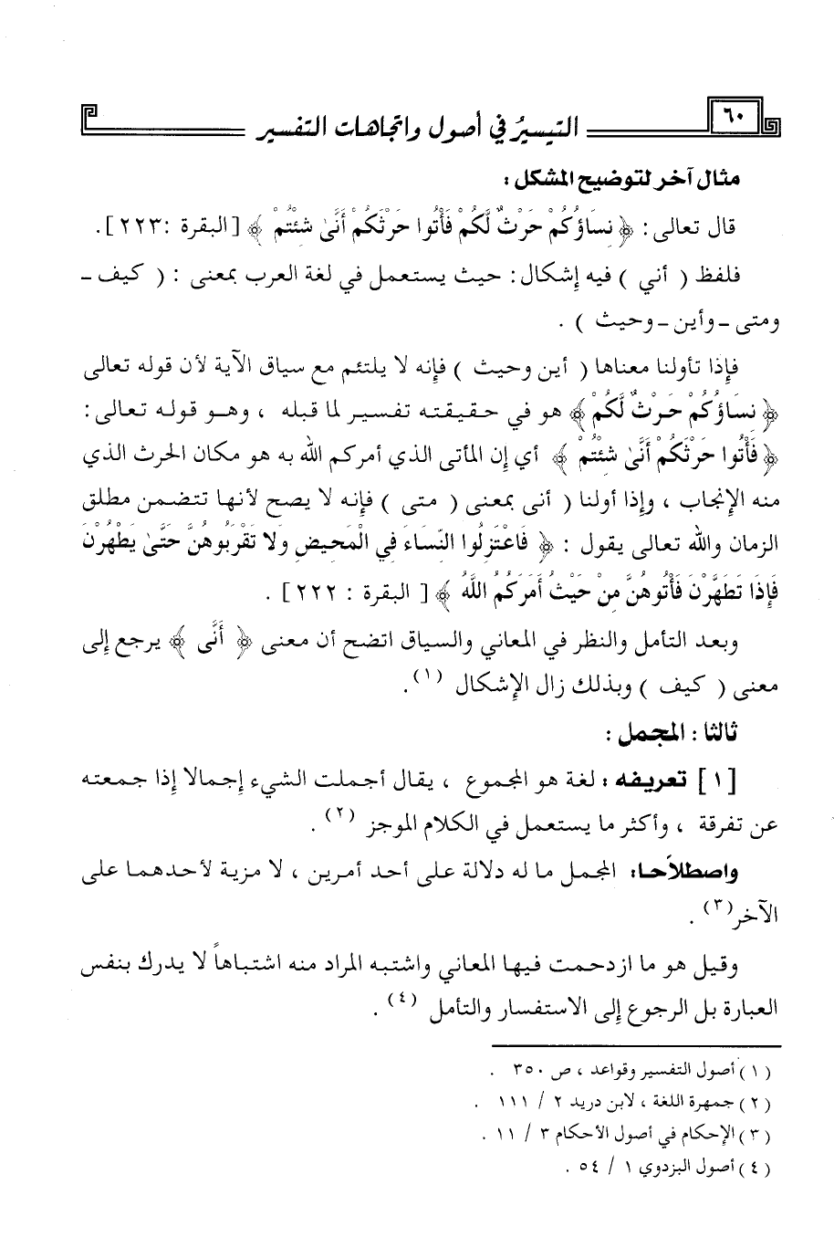 مثال آخر لتوضيح المشكل: قال تعالى: نِساؤُكمْ حَرْثٌ لَكمْ فَأْتُوا حَرْثَكمْ أَنَّي شِئْتُمْ [البقرة: 223].