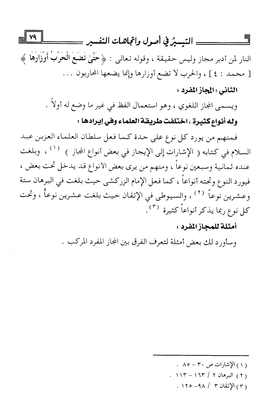 النار لمن أدبر مجاز وليس حقيقة، وقوله تعالى: حَتَّي تَضَعَ الْحَرْبُ أَوْزارَها [محمد: 4]، والحرب لا تضع أوزارها وإنما يضعها المحاربون ...