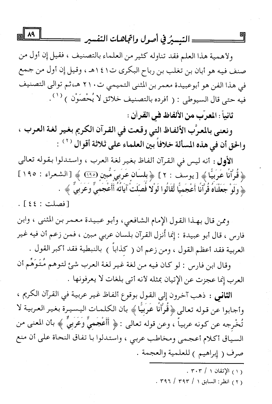 ونعني بالمعرّب الألفاظ التي وقعت في القرآن الكريم بغير لغة العرب، والحق أن في هذه المسألة خلافا بين العلماء على ثلاثة أقوال (¬2):