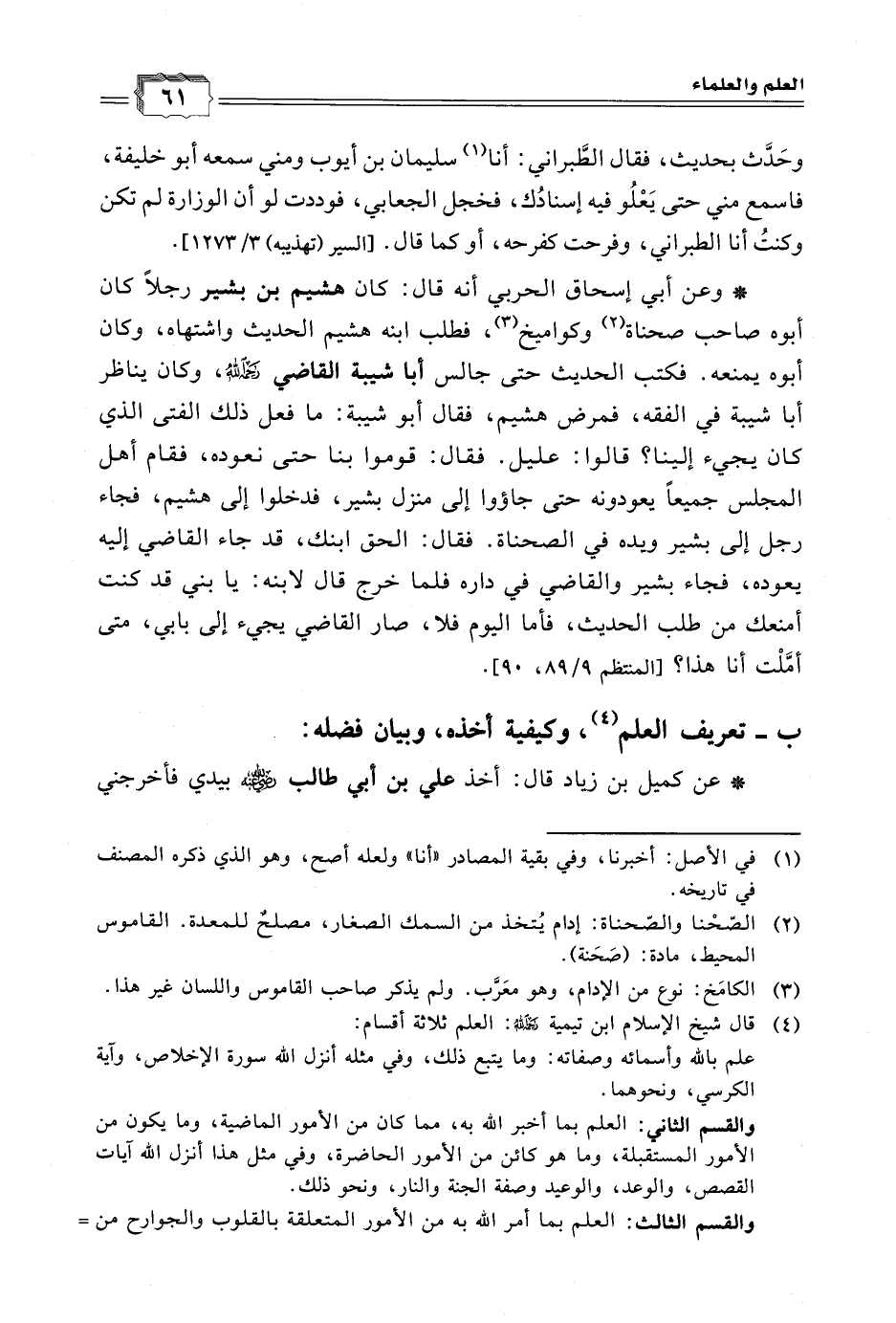(ب) تعريف العلم (¬4)،وكيفية أخذه، وبيان فضله: