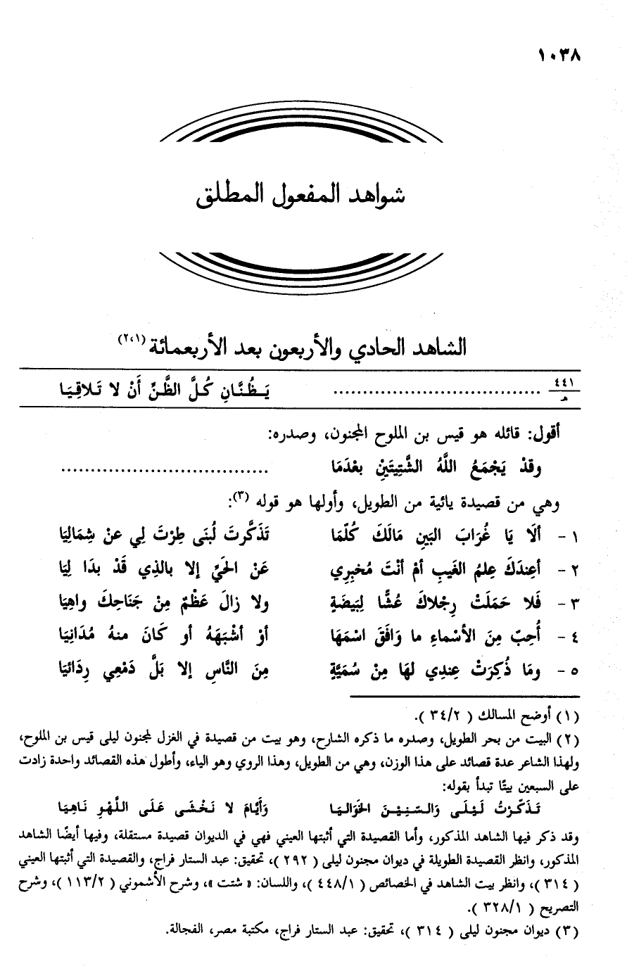 (¬3) ديوان مجنون ليلى (314)، تحقيق: عبد الستار فراج، مكتبة مصر، الفجالة.