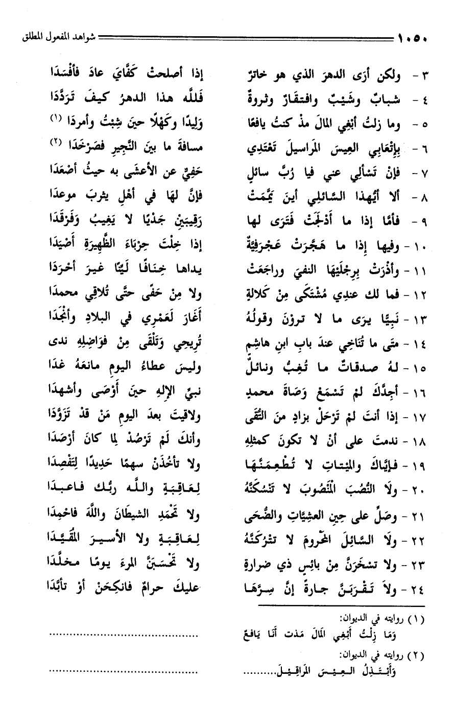 21 - وصَلِّ على حِيِن العشِيَّاتِ والضُّحَى ... ولا تَحْمَدِ الشيطَانَ واللهَ فاحْمِدَا