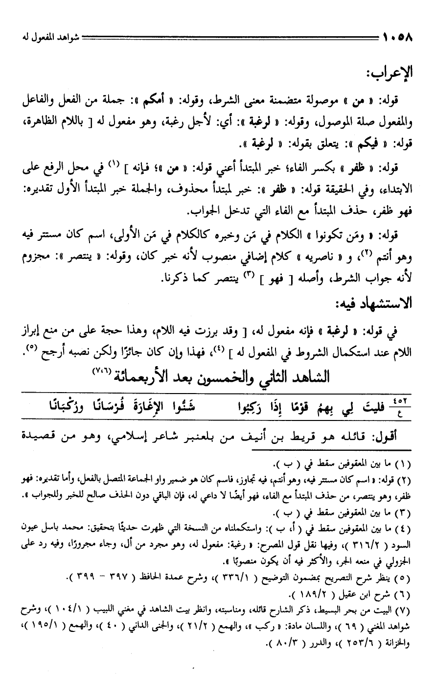 في قوله: "لرغبة" فإنه مفعول له، [وقد برزت فيه اللام، وهذا حجة على من منع إبراز اللام عند استكمال الشروط في المفعول له] (¬4)، فهذا وإن كان جائزًا ولكن نصبه أرجح (¬5).