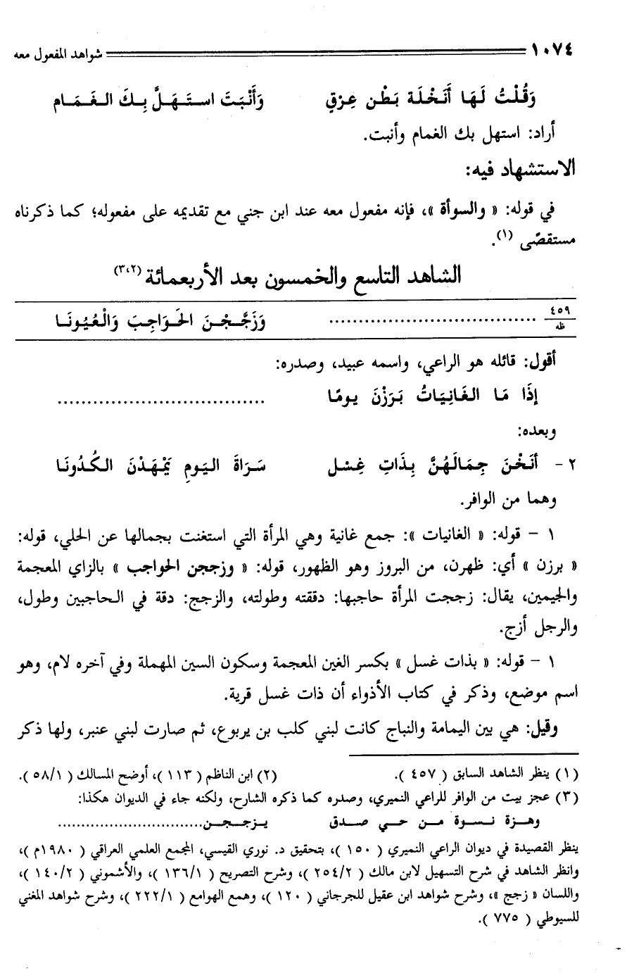 (¬3) عجز بيت من الوافر للراعي النميري، وصدره كما ذكره الشارح، ولكنه جاء في الديوان هكذا: