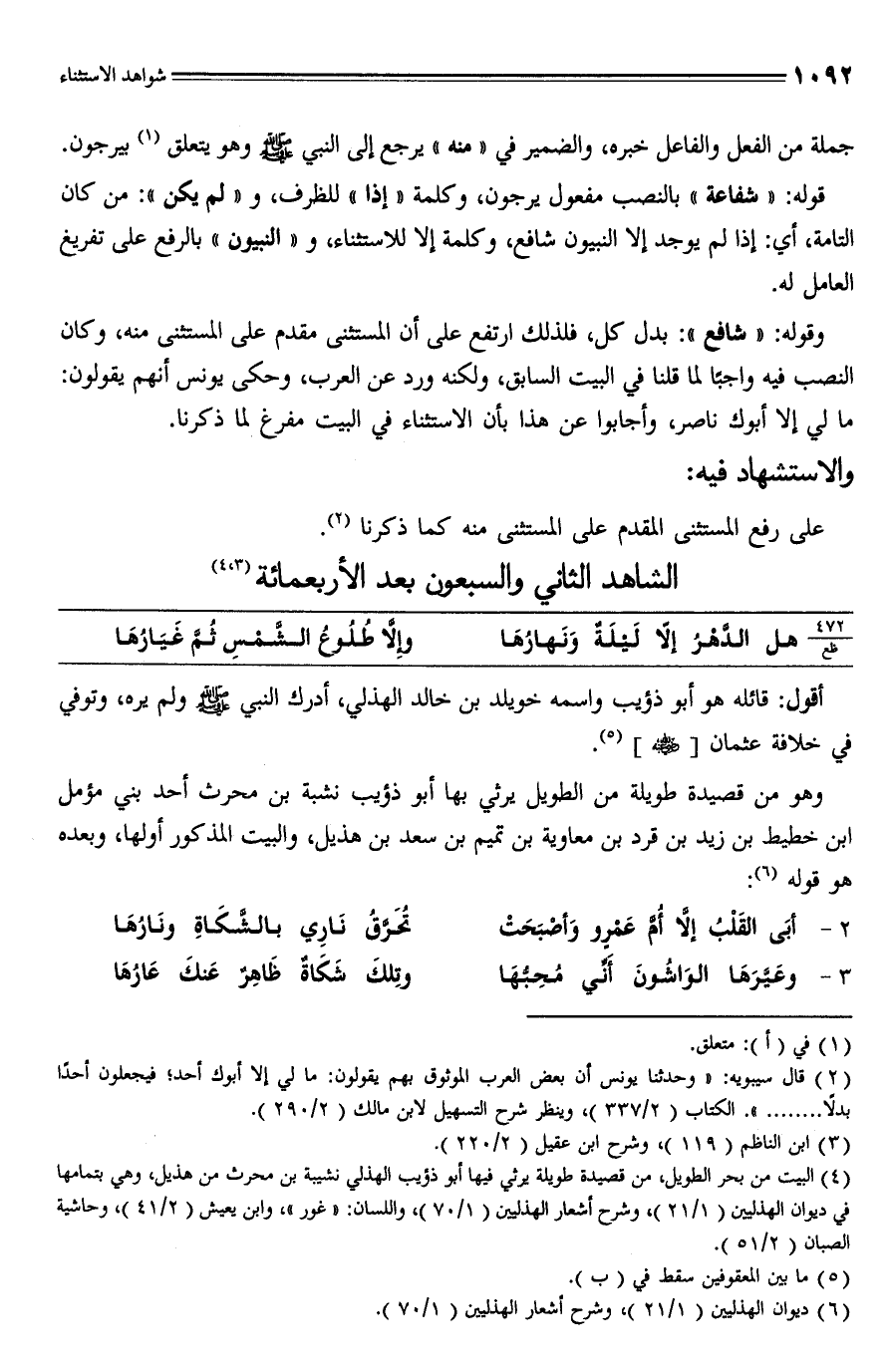 (¬4) البيت من بحر الطويل، من قصيدة طويلة يرثي فيها أبو ذؤيب الهذلي نشيبة بن محرث من هذيل، وهي بتمامها في ديوان الهذليين (1/ 21)، وشرح أشعار الهذليين (1/ 70)، واللسان: "غور"، وابن يعيش (2/ 41)، وحاشية الصبان (2/ 51).