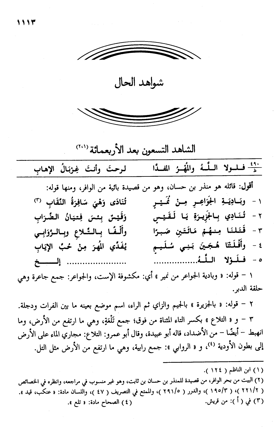 1 - وبَادِيَةِ الجَوَاعِر مِن نُمَيرٍ ... تُنَادَى وَهْيَ سَافِرَةُ النِّقَاب (¬3)