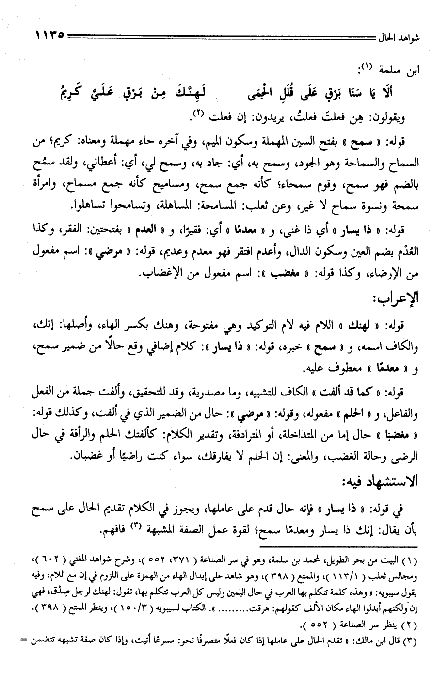 في قوله: "ذا يسار" فإنه حال قدم على عاملها، ويجوز في الكلام تقديم الحال على سمح بأن يقال: إنك ذا يسار ومعدمًا سمح؛ لقوة عمل الصفة المشبهة (¬3) فافهم.