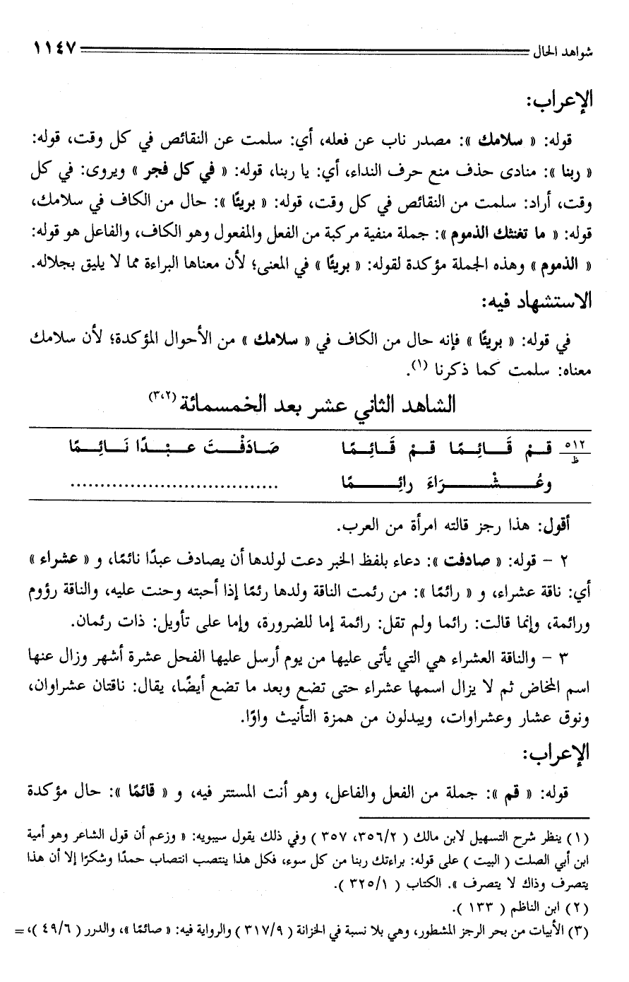 (¬1) ينظر شرح التسهيل لابن مالك (2/ 356، 357) وفي ذلك يقول سيبويه: "وزعم أن قول الشاعر وهو أمية بن أبي الصلت (البيت) على قوله: براءتك ربنا من كل سوء، فكل هذا ينتصب انتصاب حمدًا وشكرًا إلا أن هذا يتصرف وذاك لا يتصرف". الكتاب (1/ 325).