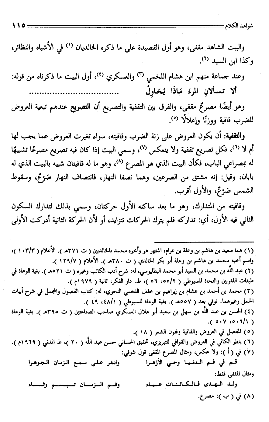 (¬6) ينظر الكافي في العروض والقوافي للتبريزي، تحقيق الحساني حسن عبد الله (20)، ط المدني (1969 م).
