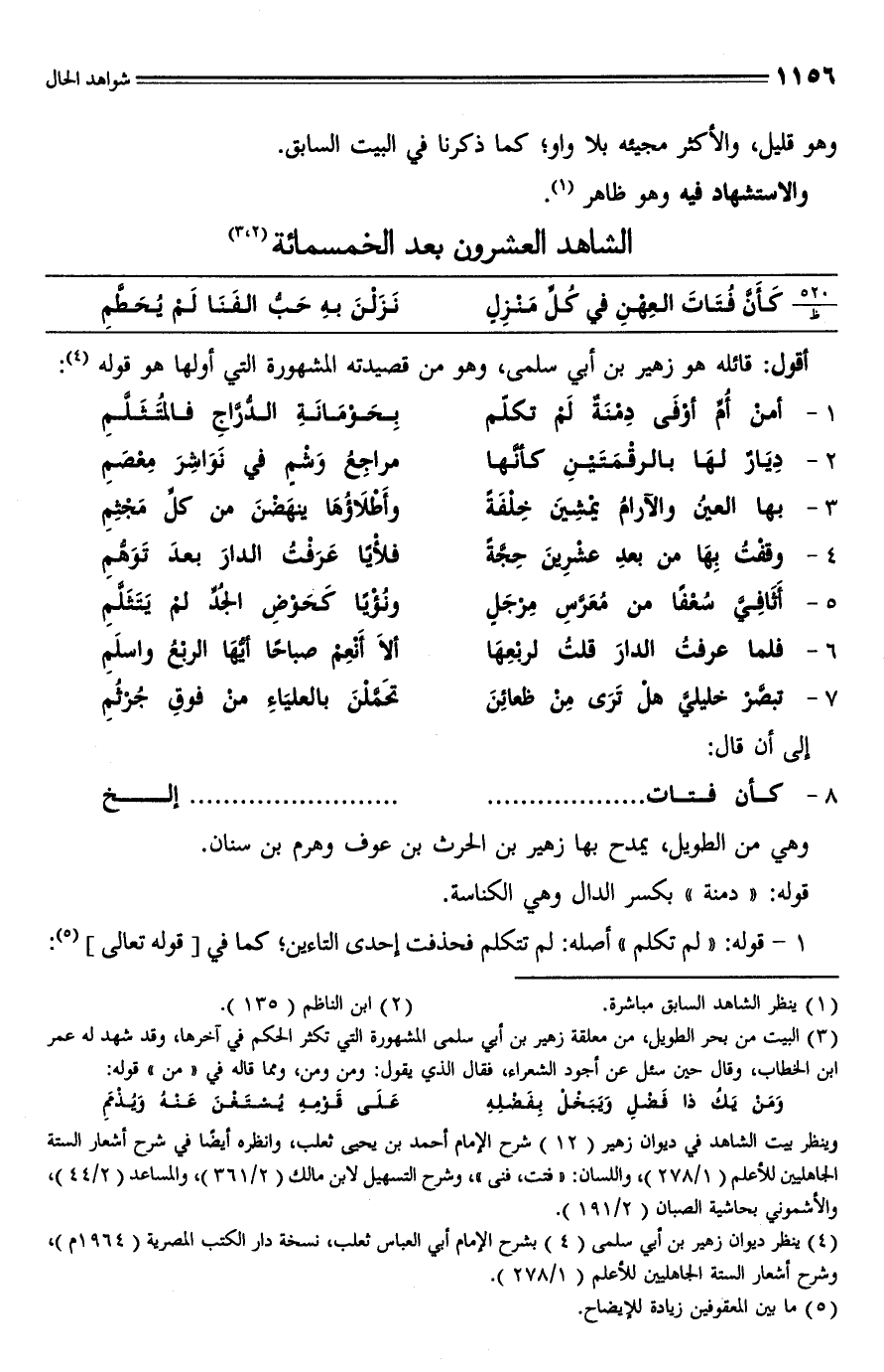 (¬4) ينظر ديوان زهير بن أبي سلمى (4) بشرح الإمام أبي العباس ثعلب، نسخة دار الكتب المصرية: (1964 م)، وشرح أشعار الستة الجاهليين للأعلم (1/ 278).