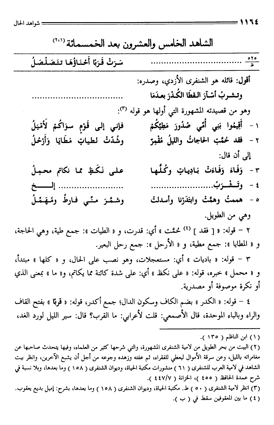 (¬3) انظر لامية الشنفرى (50) ط. مكتبة الحياة، وديوان الشنفرى (158) وما بعدها، بشرح: إميل بديع يعقوب.
