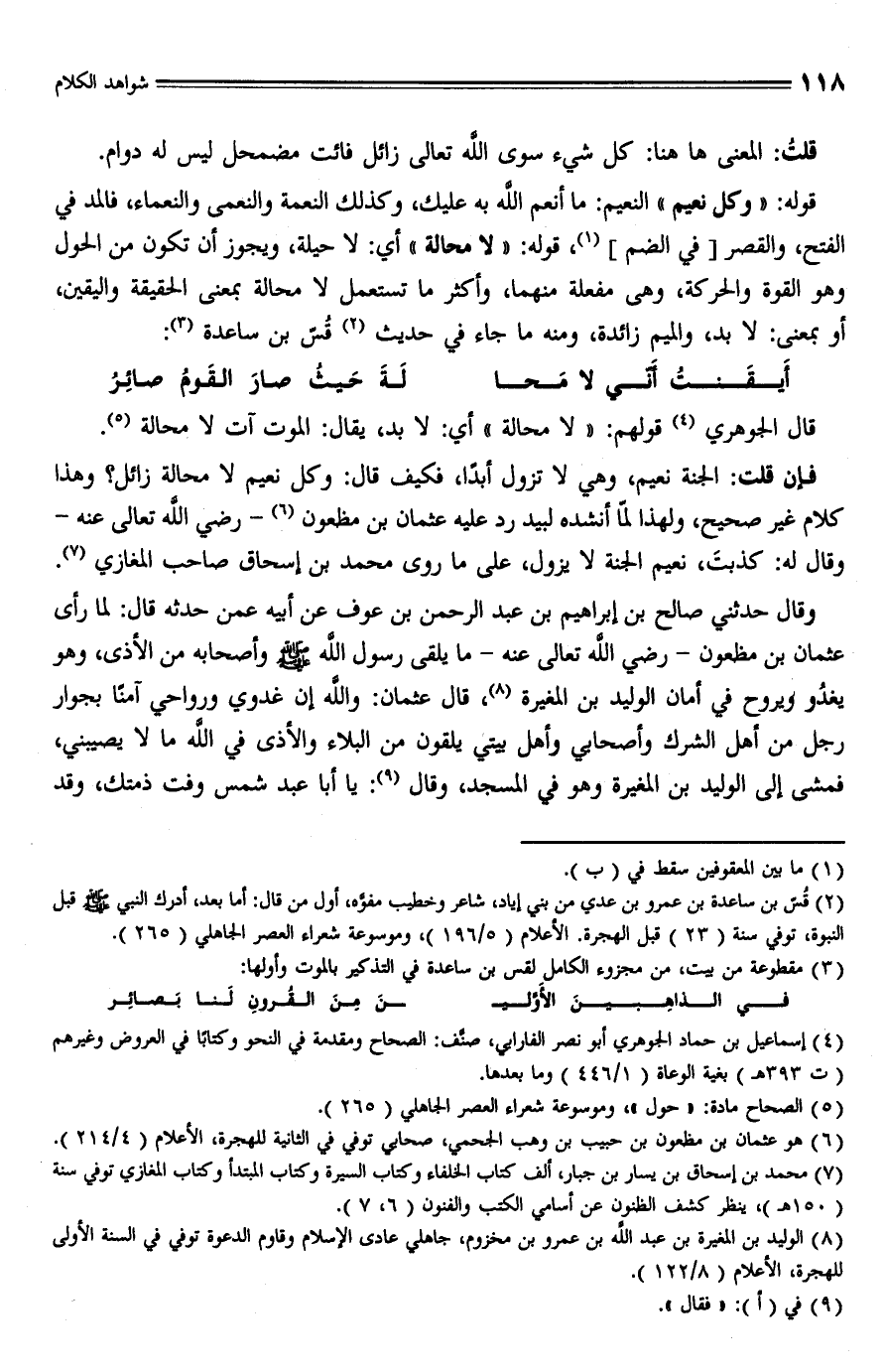 فإن قلت: الجنة نعيم، وهي لا تزول أبدًا، فكيف قال: وكل نعيم لا محالة زائل؟ وهذا كلام غير صحيح، ولهذا لمّا أنشده لبيد رد عليه عثمان بن مظعون (¬6) -رضي الله تعالى عنه- وقال له: كذبتَ، نعيم الجنة لا ووول، على ما روى محمد بن إسحاق صاحب المغازي (¬7).