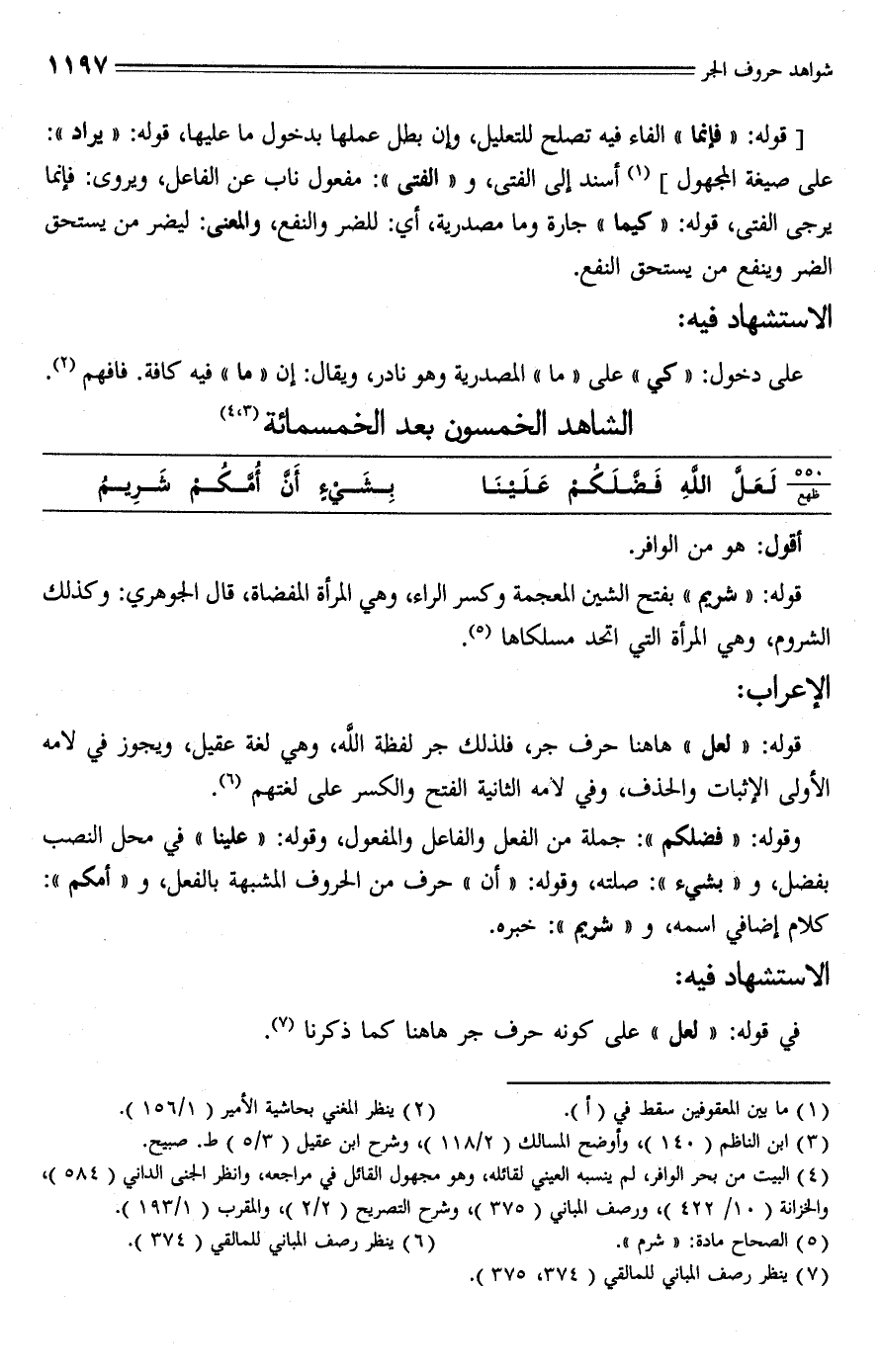 في قوله: "لعل" على كونه حرف جر هاهنا كما ذكرنا (¬7).