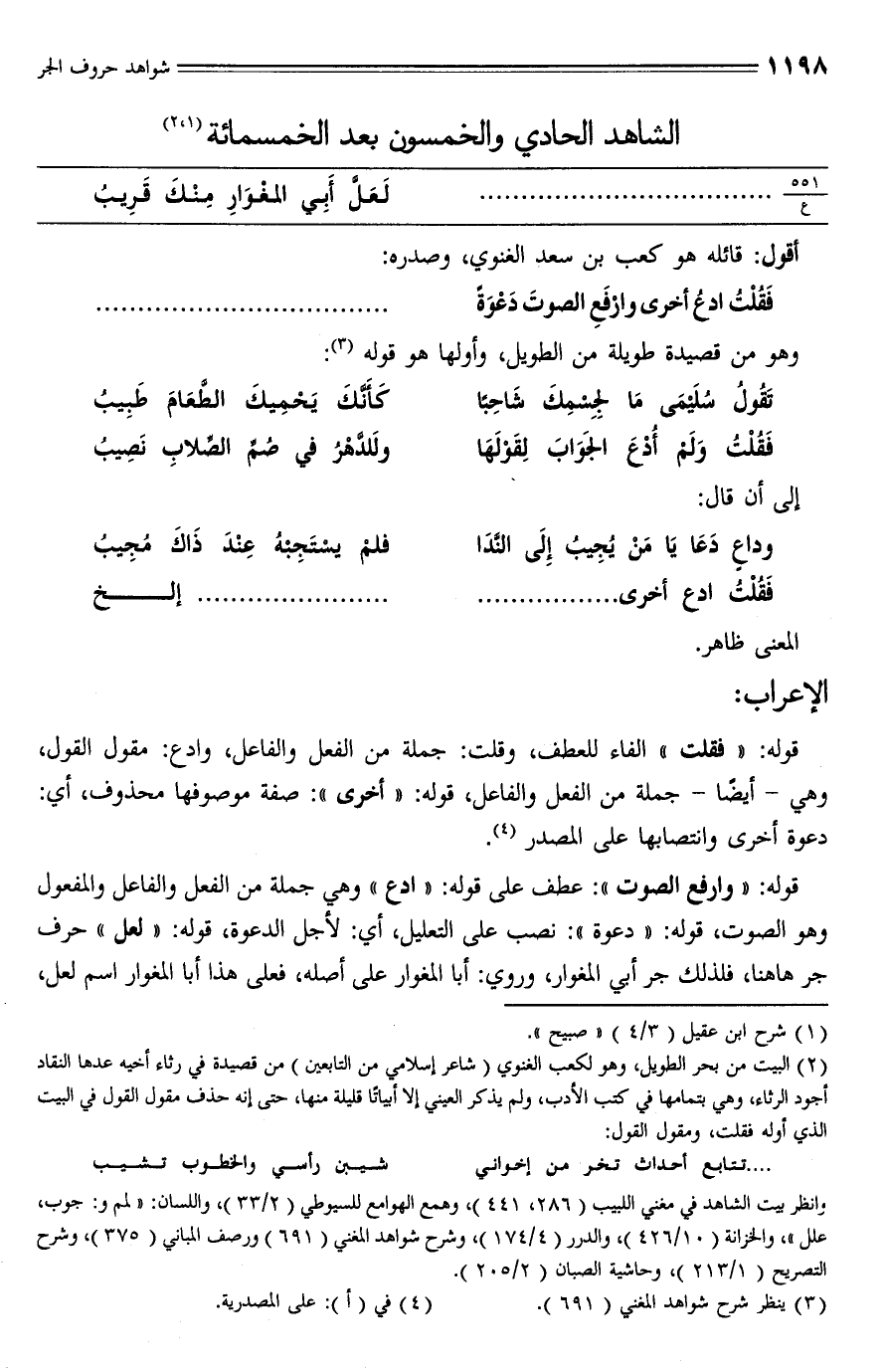 (¬3) ينظر شرح شواهد المغني (691).