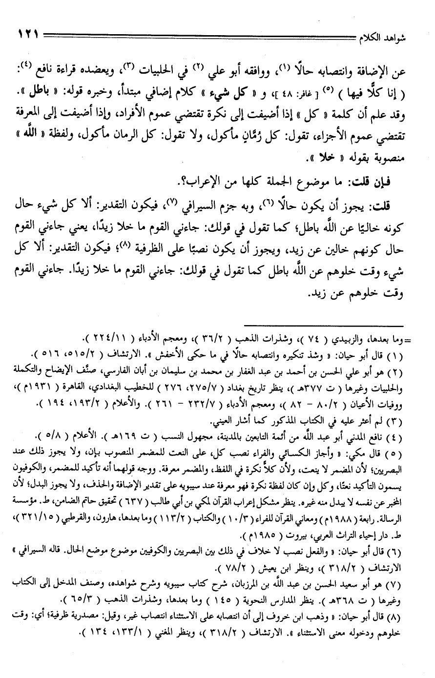 (¬1) قال أبو حيان: "وشذ تنكيره وانتصابه حالًا في ما حكى الأخفش". الارتشاف (2/ 515، 516).