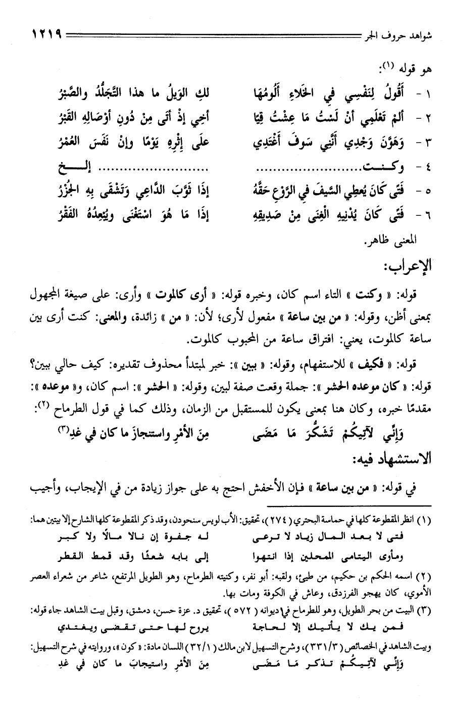 (¬3) البيت من بحر الطويل، وهو للطرماح في ديوانه (572)، تحقيق د. عزة حسن، دمشق، وقبل بيت الشاهد جاء قوله: