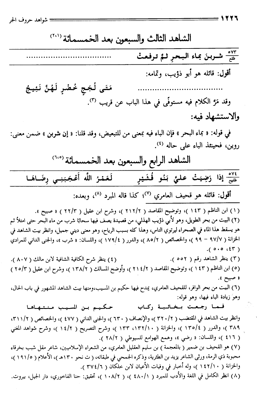 (¬8) انظر الكامل في اللغة والأدب للمبرد (1/ 480)، (2/ 108)، تحقيق: حنا الفاخوري، دار الجيل، بيروت.