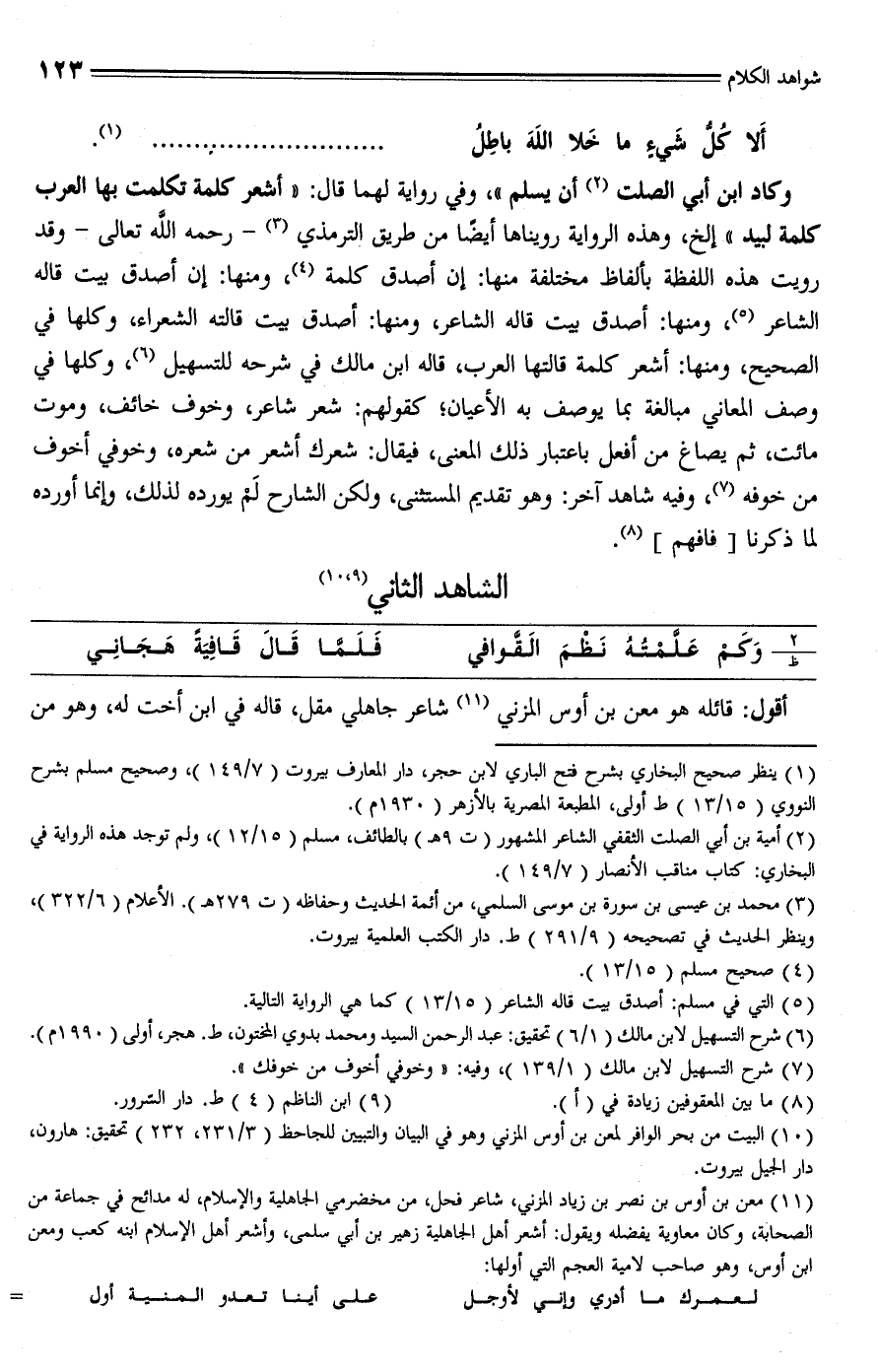 ألا كُلُّ شيءٍ مما خَلا اللهَ باطلُ ... ................. (¬1).