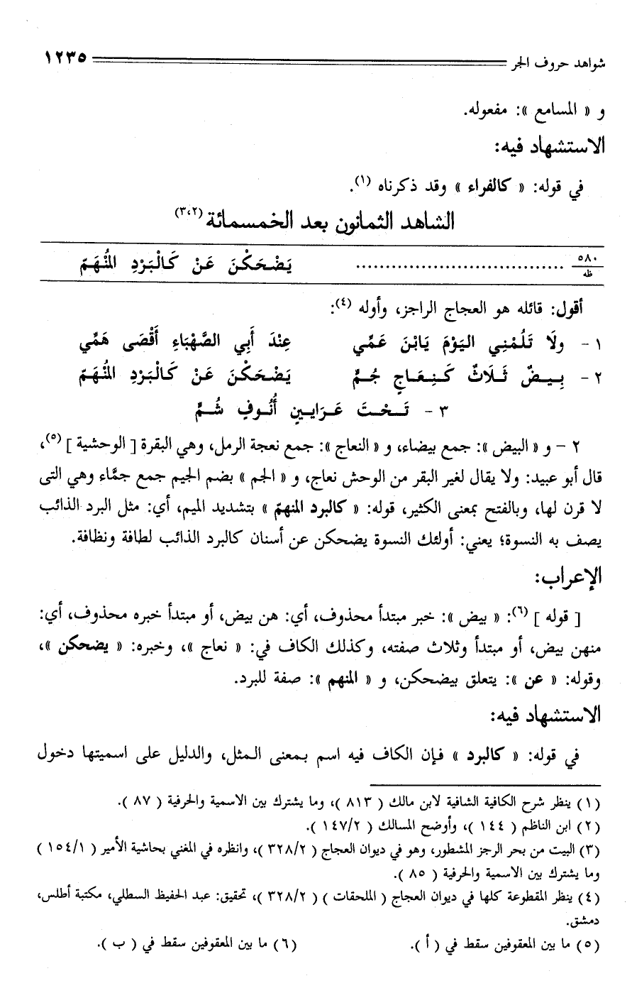 (¬4) ينظر المقطوعة كلها في ديوان العجاج (الملحقات) (2/ 328)، تحقيق: عبد الحفيظ السطلي، مكتبة أطلس، دمشق.