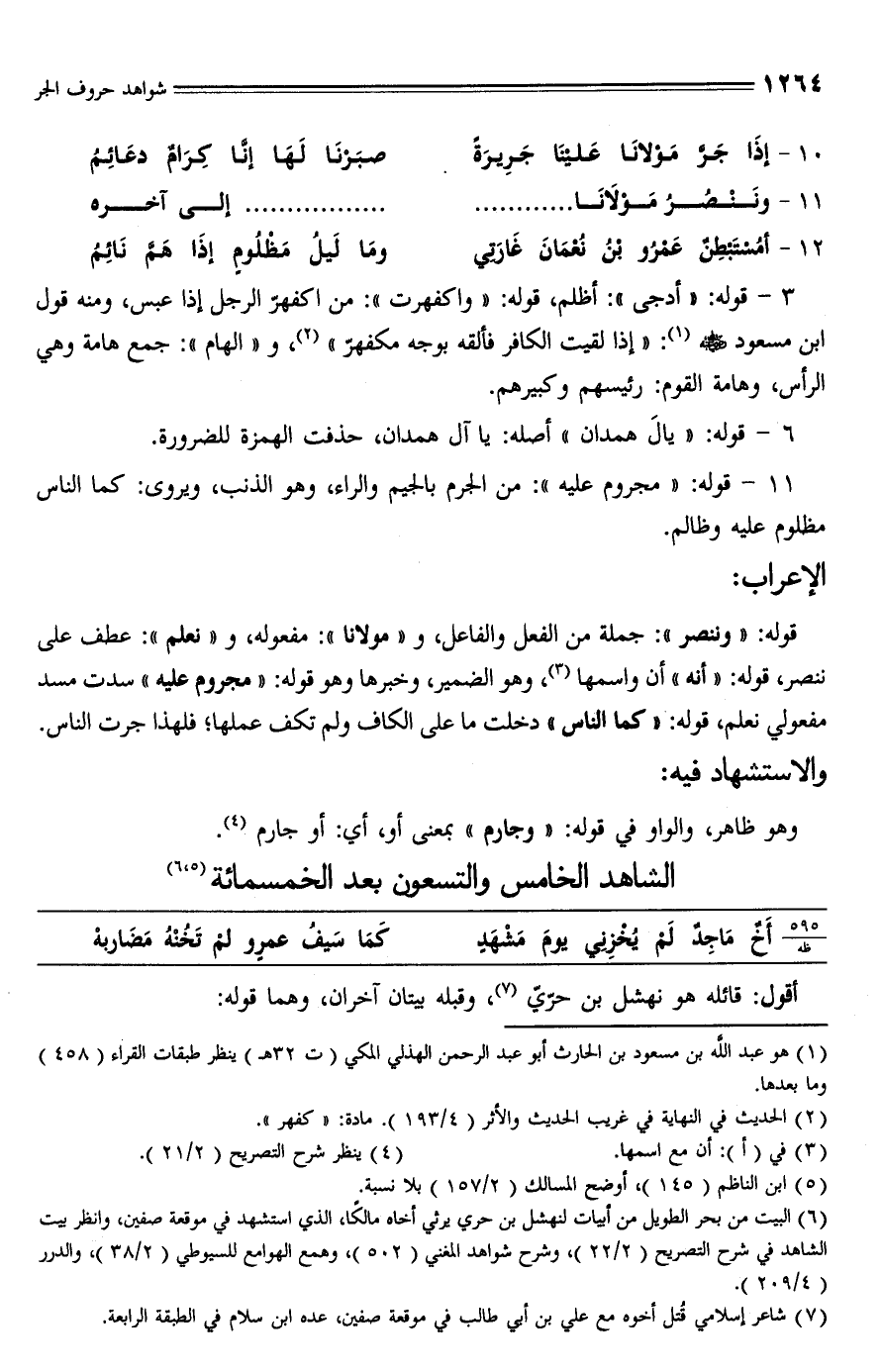 (¬6) البيت من بحر الطويل من أبيات لنهشل بن حري ورثي أخاه مالكًا، الذي استشهد في موقعة صفين، وانظر بيت الشاهد في شرح التصريح (2/ 22)، وشرح شواهد المغني (502)، وهمع الهوامع للسيوطي (2/ 38)، والدرر (4/ 209).