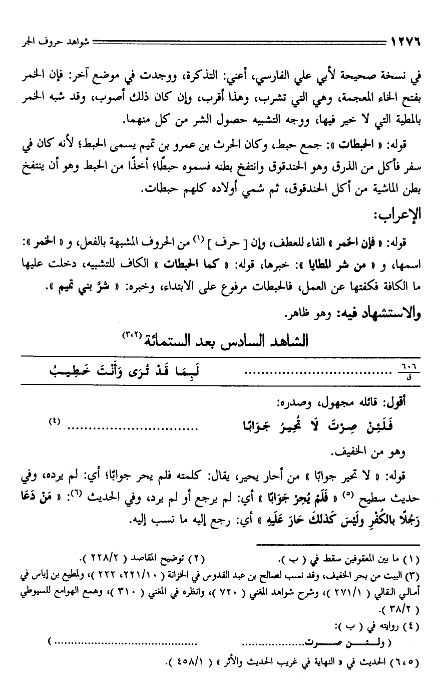 (¬3) البيت من بحر الخفيف، وقد نسب لصالح بن عبد القدوس في الخزانة (10/ 221، 222)، ولمطيع بن إياس في أمالي القالي (1/ 271)، وشرح شواهد المغني (720)، وانظره في المغني (310)، وهمع الهوامع للسيوطي (2/ 38).