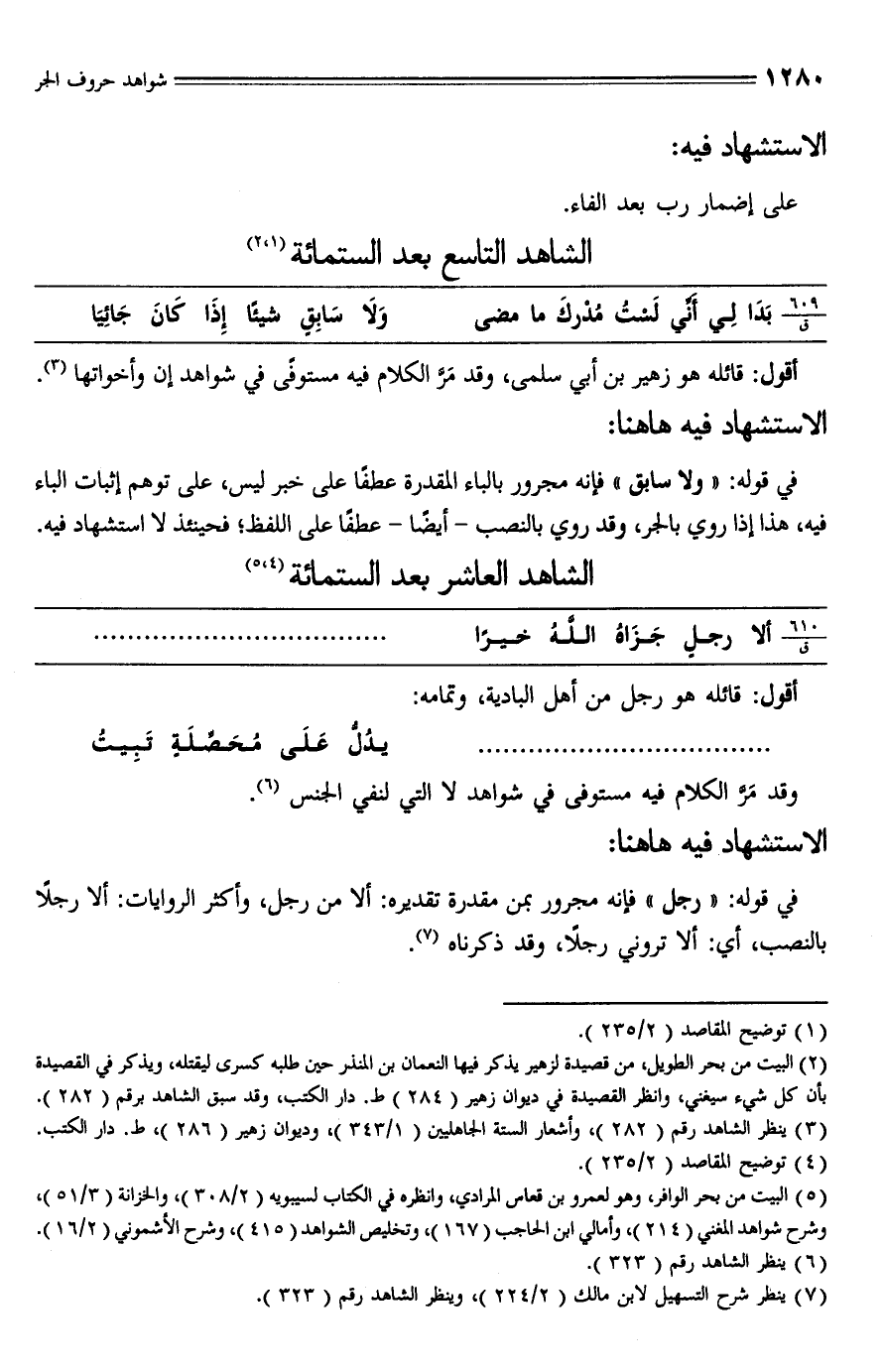 (¬7) ينطر شرح التسهيل لابن مالك (2/ 224)، وينظر الشاهد رقم (323).