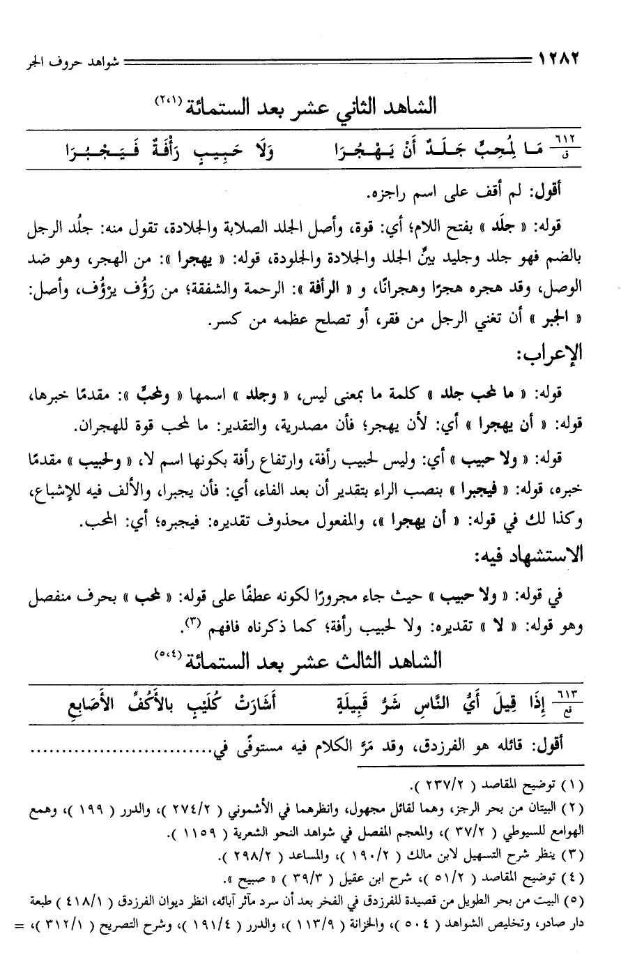 الشاهد الثالث عشر بعد الستمائة (¬4) , (¬5)