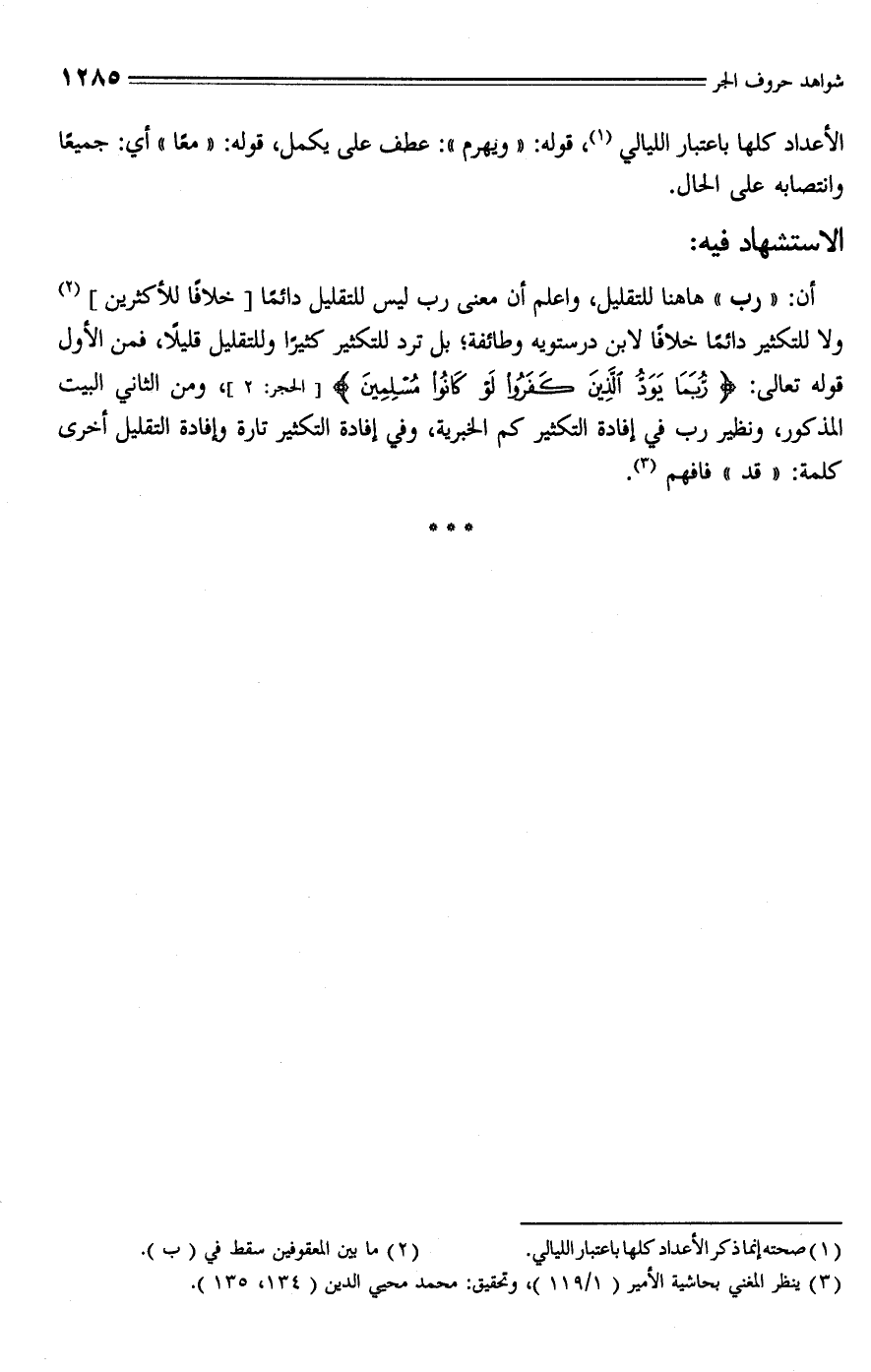 (¬3) ينظر المغني بحاشية الأمير (1/ 119)، وتحقيق: محمَّد محيي الدين (134، 135).