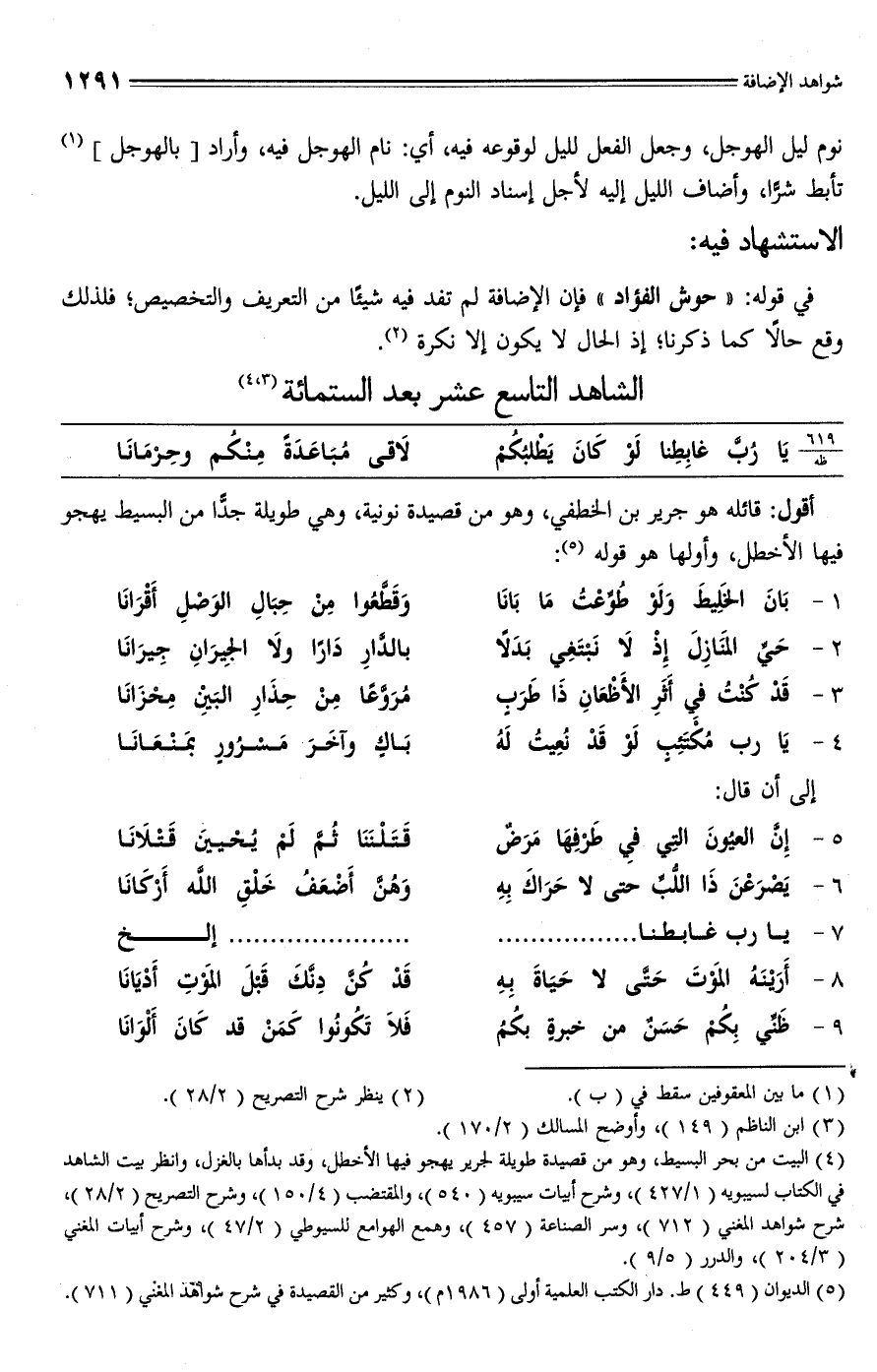 (¬5) الديوان (449) ط. دار الكتب العلمية أولى (1986 م)، وكثير من القصيدة في شرح شواهد المغني (711).
