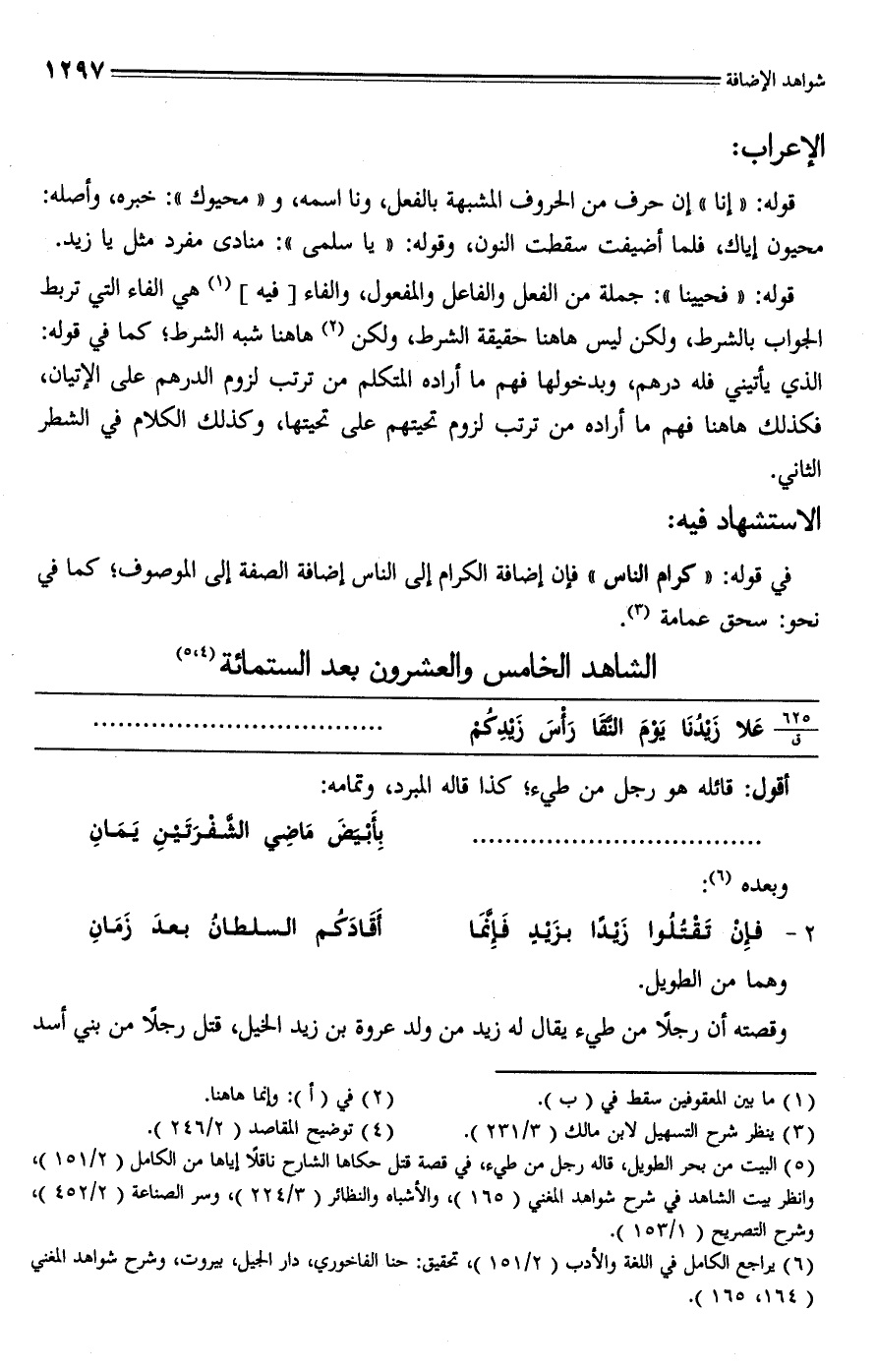 (¬6) يراجع الكامل في اللغة والأدب (2/ 151)، تحقيق: حنا الفاخوري، دار الجيل، بيروت، وشرح شواهد المغني (164, 165).