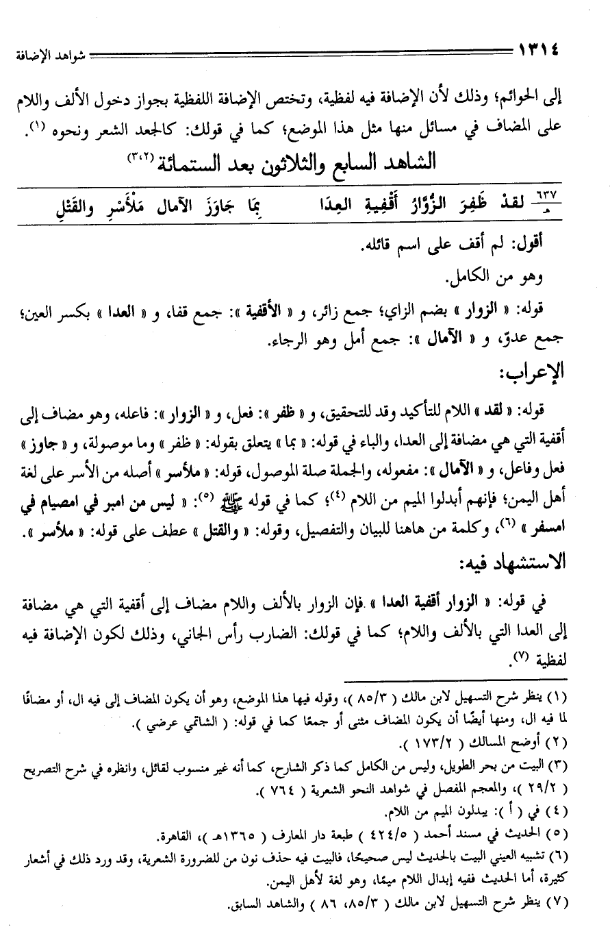 (¬7) ينظر شرح التسهيل لابن مالك (3/ 85، 86) والشاهد السابق.