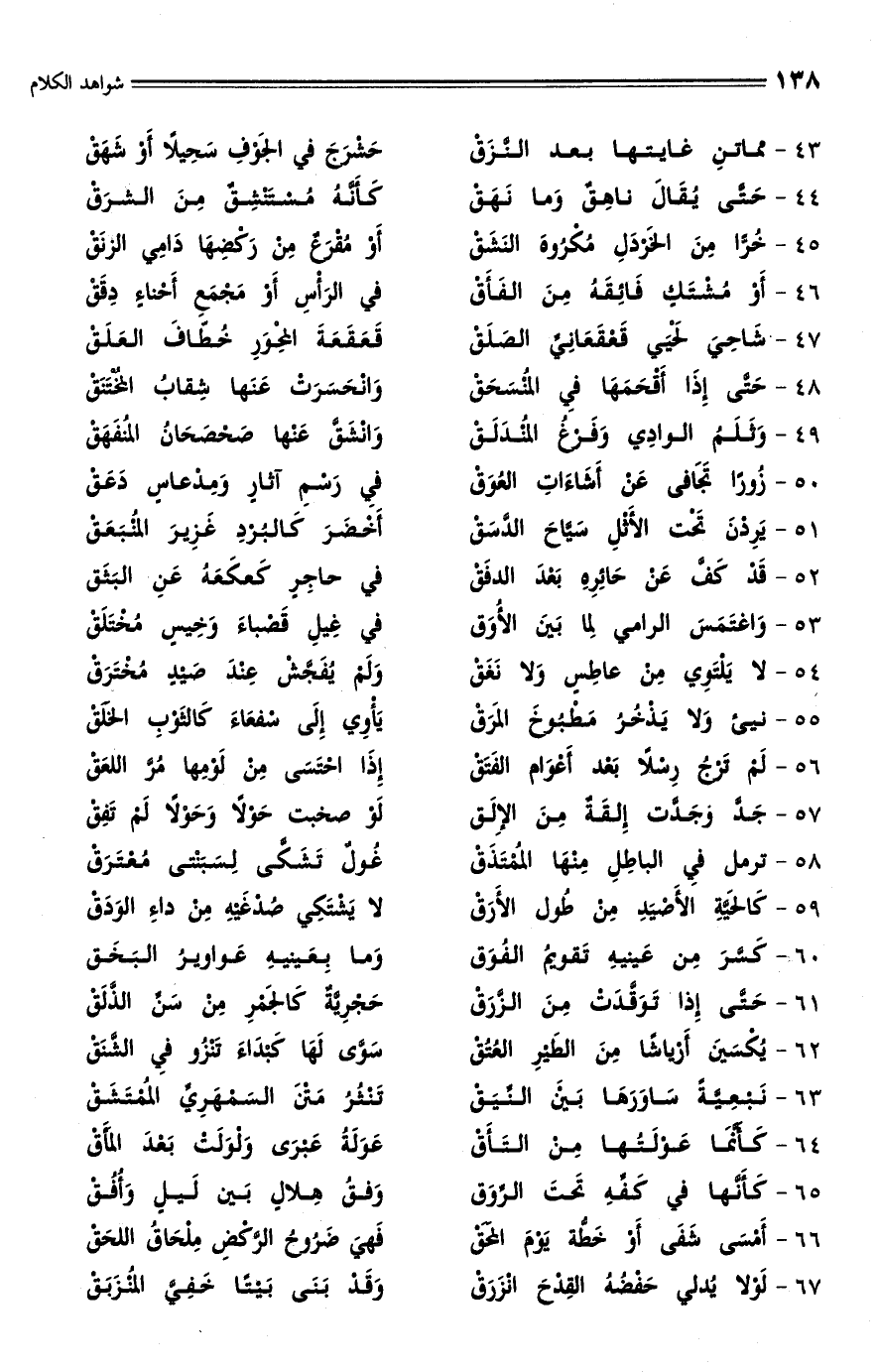 58 - ترمل فيِ الباطلِ مِنْهَا المُمْتَذَقْ ... غُولٌ تَشَكّى لِسَبنْتى مُعتَرَقْ