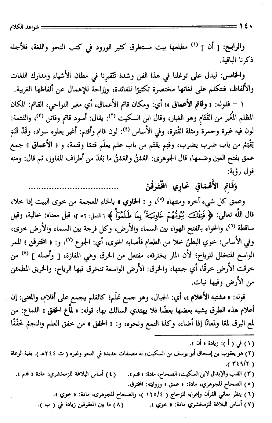 (¬5) الصحاح للجوهري، مادة: "عمق" وروايته: المخترق.