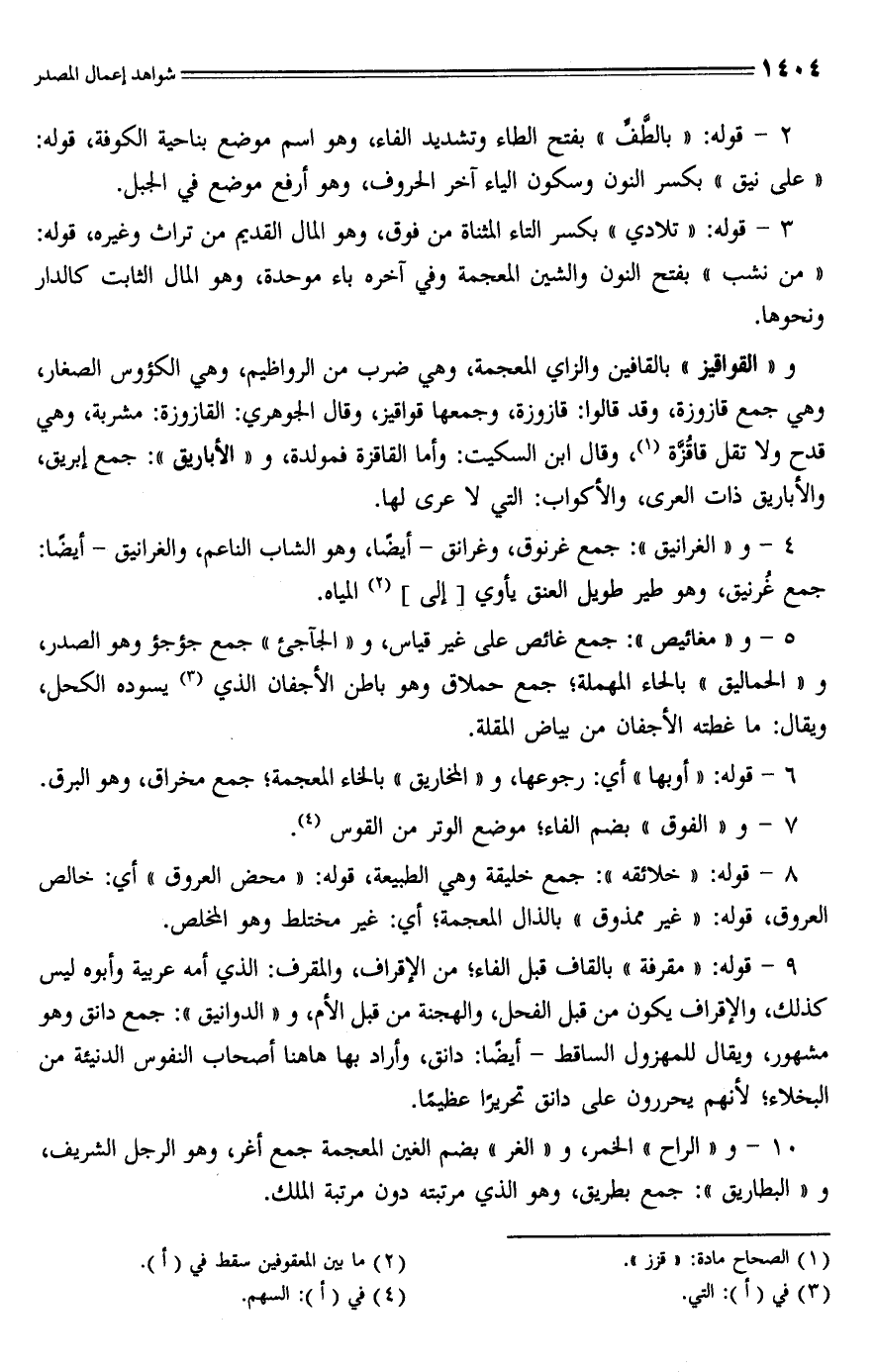 10 - و"الراح" الخمر، و"الغر" بضم الغين المعجمة جمع أغر، وهو الرجل الشريف، و"البطاريق": جمع بطريق، وهو الَّذي مرتبته دون مرتبة الملك.