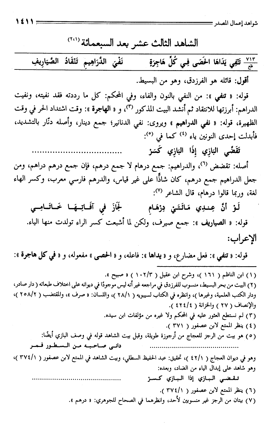 (¬2) البيت من بحر البسيط، منسوب للفرزدق في مراجعه غير أنَّه ليس موجودًا في ديوانه على اختلاف طبعاته (دار صادر، ودار الكتب العلمية، وغيرها)، وانظره في الكتاب لسيبويه (1/ 28)، واللسان: "صرف"، والمقتضب (2/ 258)، والإنصاف (27) والخزانة (4/ 424).
