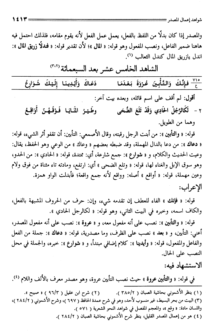 (¬4) هو من أعمال المصدر القليل، ينظر شرح الأشموني بحاشية الصبان (2/ 284).