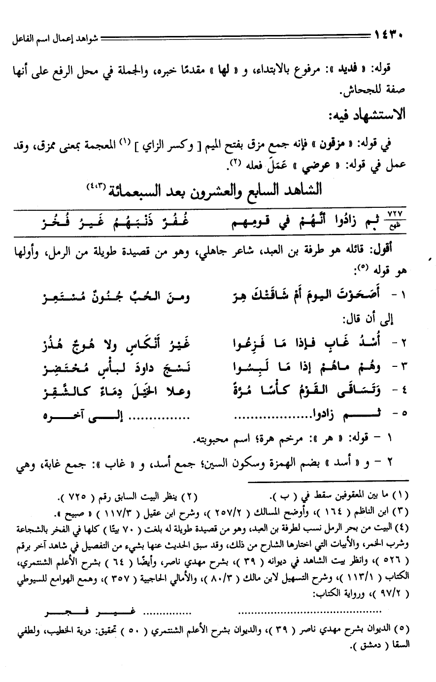 (¬5) الديوان بشرح مهدي ناصر (39)، والديوان بشرح الأعلم الشنتمري (50) تحقيق: درية الخطيب، ولطفي السقا (دمشق).