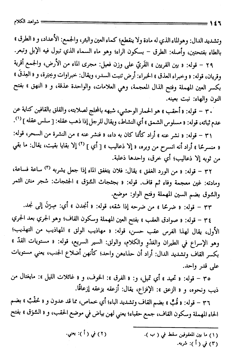 29 - قوله: "بين القريين" القَريّ على وزن فعيل: مجرى الماء من الأرض، والجمع أقرية وقريان، قوله: "وخبراء العذق" الخبراء: أرض تنبت السدر، ويقال: خبراوات وخِبَرة، و"العِذقَ" بكسر العين المهملة وفتح الذال المعجمة، وهي العلامات، والواحدة عذقة، و"النهق" بفتح النون والهاء: نبت بعينه.