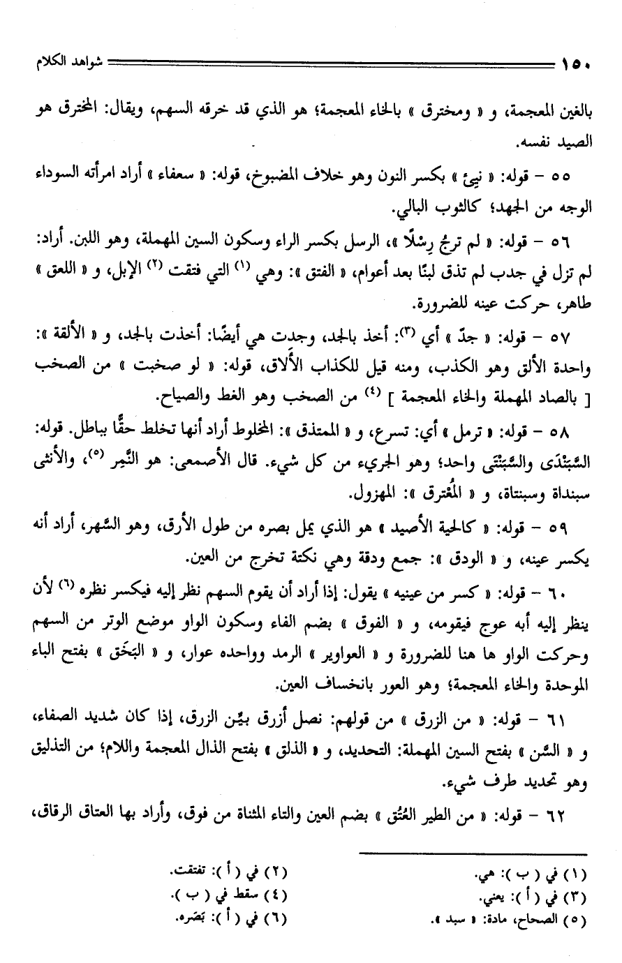 55 - قوله: "نيِئ" بكسر النون وهو خلاف المضبوخ، قوله: "سعفاء" أراد امرأته السوداء الوجه من الجهد؛ كالثوب البالي.