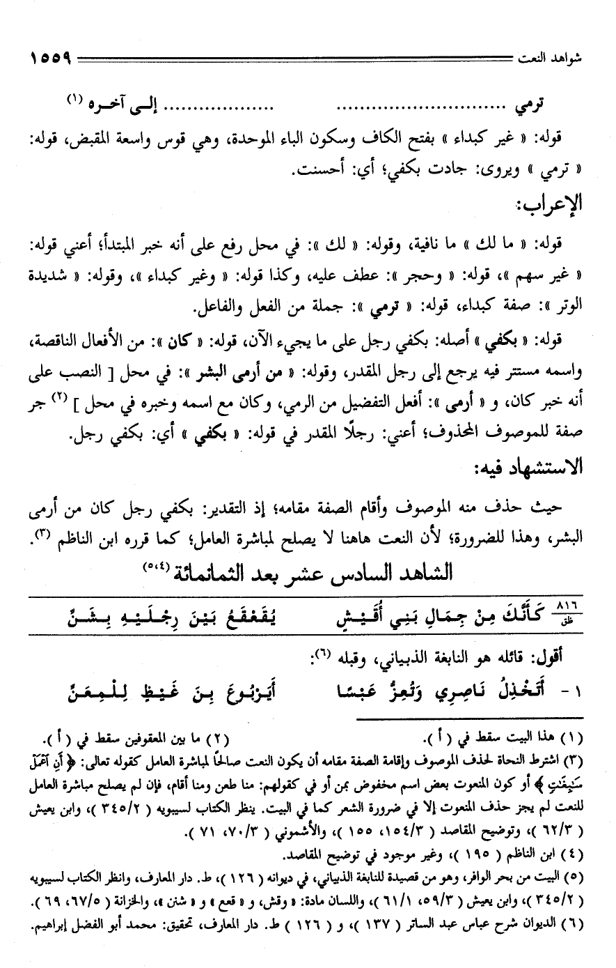 (¬6) الديوان شرح عباس عبد الساتر (137)، و (126) ط. دار المعارف، تحقيق: محمد أبو الفضل إبراهيم.