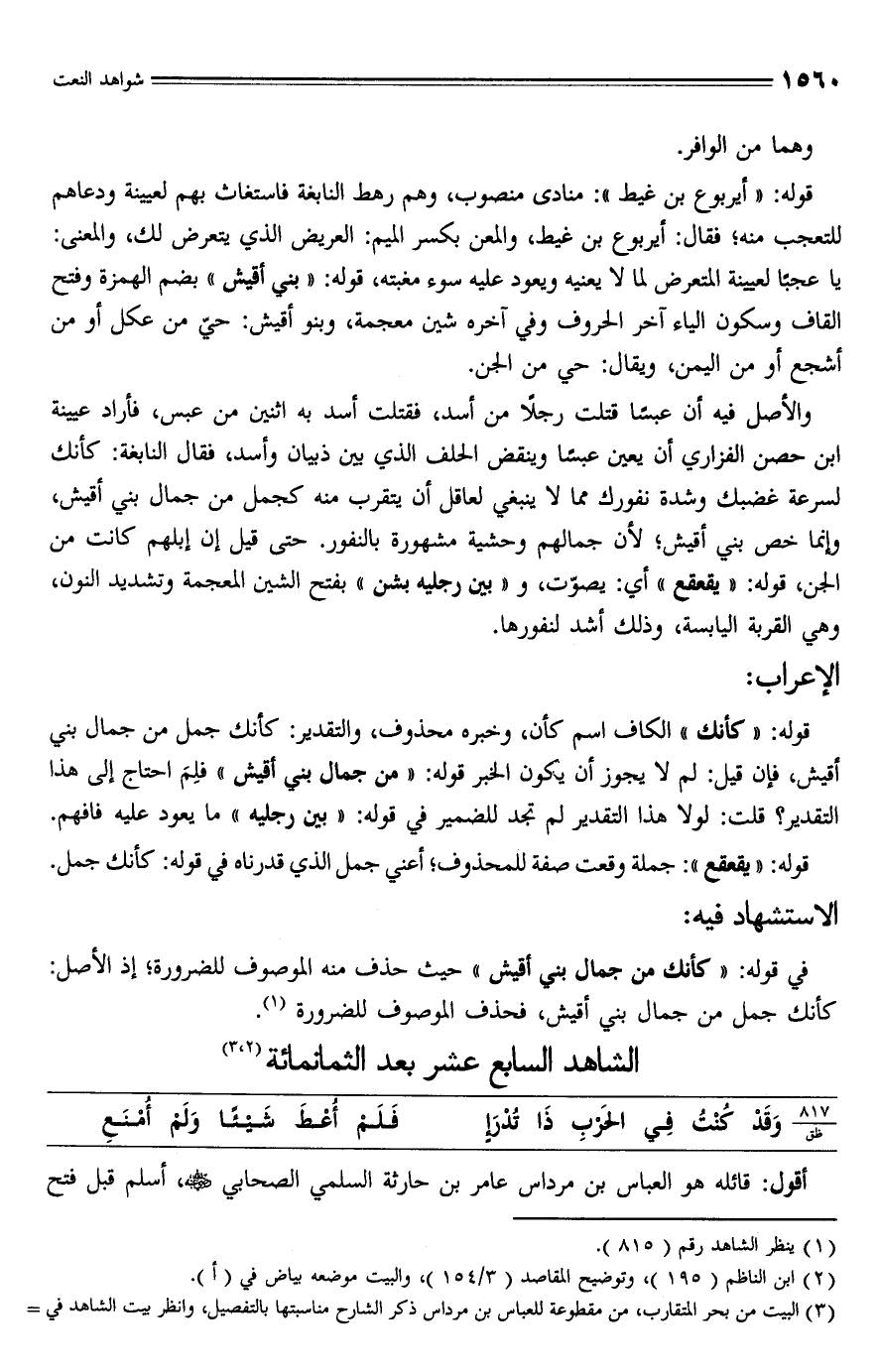 (¬3) البيت من بحر المتقارب، من مقطوعة للعباس بن مرداس ذكر الشارح مناسبتها بالتفصيل، وانظر بيت الشاهد في =