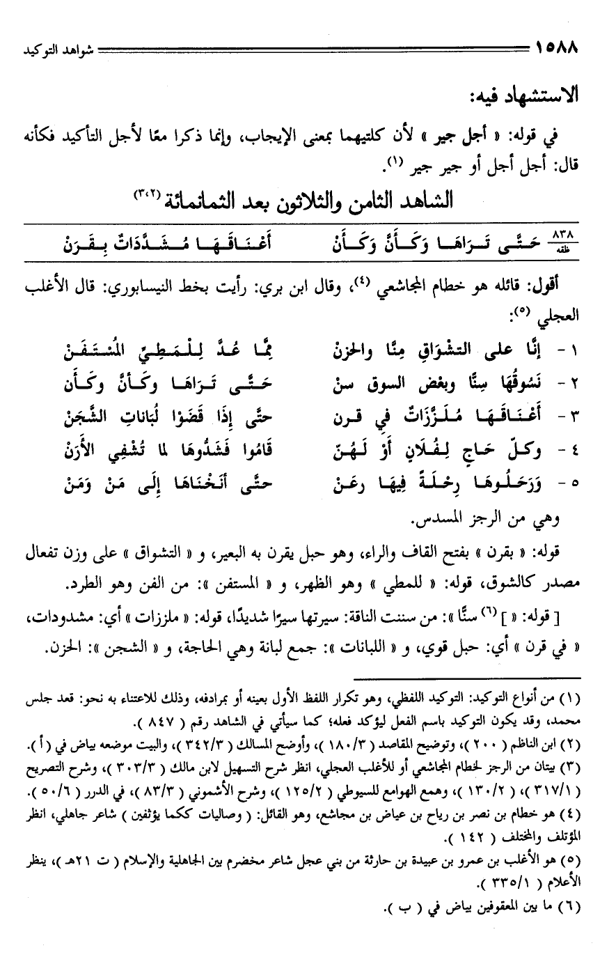 (¬3) بيتان من الرجز لخطام المجاشعي أو للأغلب العجلي، انظر شرح التسهيل لابن مالك (3/ 303)، وشرح التصريح (1/ 317)، (2/ 130)، وهمع الهوامع للسيوطي (2/ 125)، وشرح الأشموني (3/ 83)، في الدرر (6/ 50).