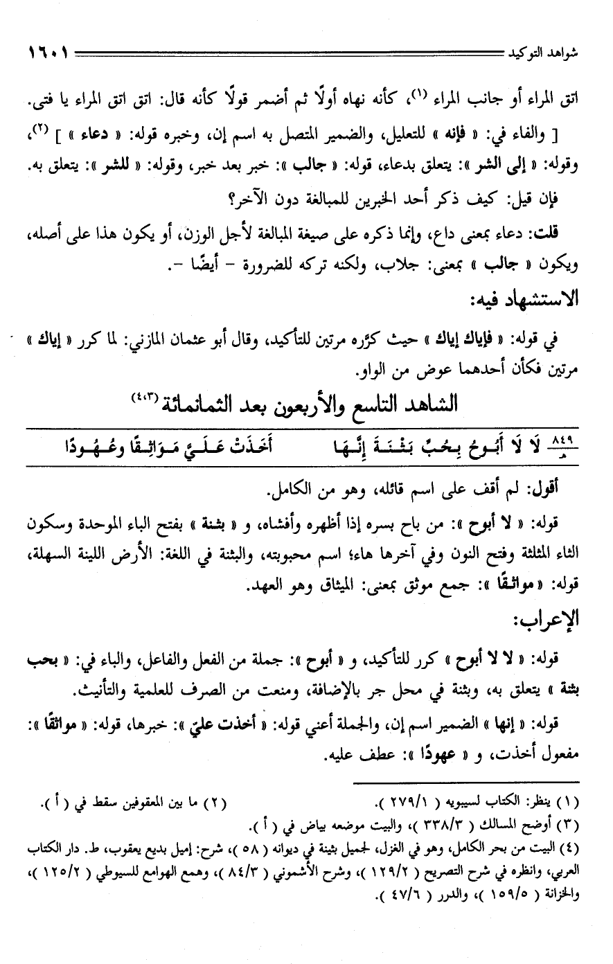 (¬4) البيت من بحر الكامل، وهو في الغزل، لجميل بثينة في ديوانه (58)، شرح: اميل بديع يعقوب، ط. دار الكتاب العربي، وانظره في شرح التصريح (2/ 129)، وشرح الأشموني (3/ 84)، وهمع الهوامع للسيوطي (2/ 125)، والخزانة (5/ 159)، والدرر (6/ 47).