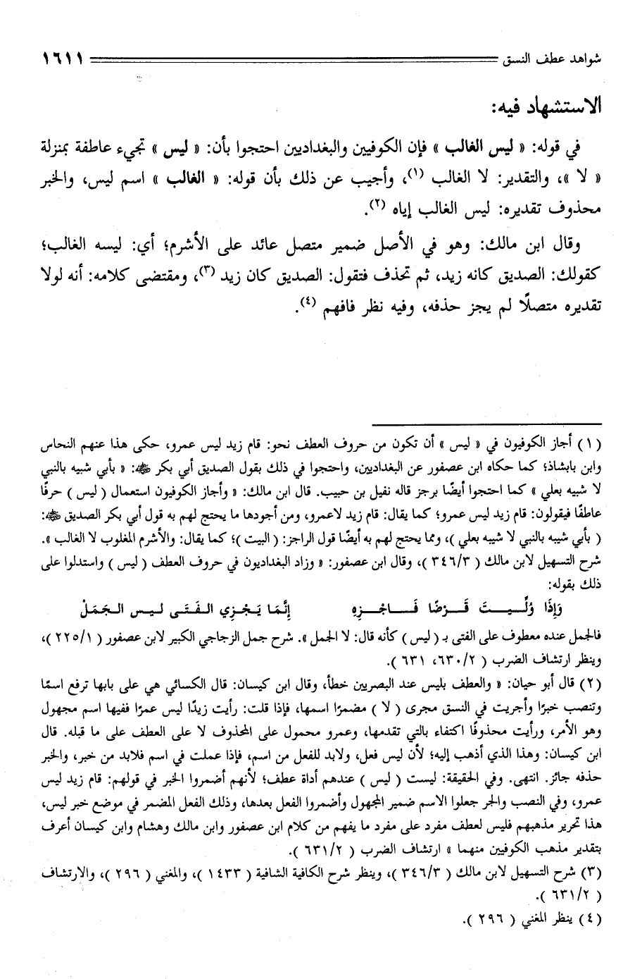 (¬3) شرح التسهيل لابن مالك (3/ 346)، وينظر شرح الكافية الشافية (1433)، والمغني (296)، والارتشاف (2/ 631).