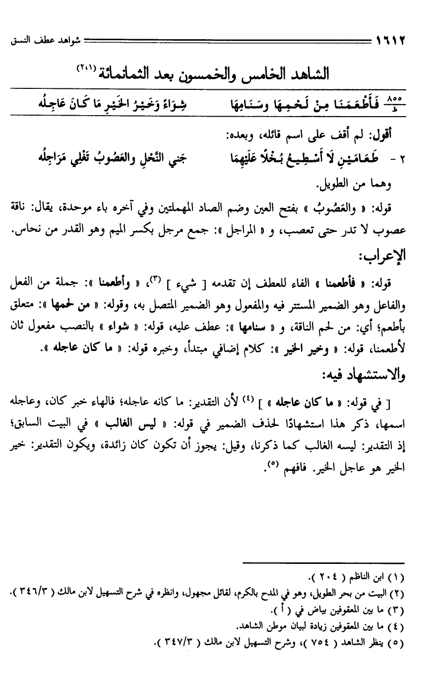 (¬5) ينظر الشاهد (754)، وشرح التسهيل لابن مالك (3/ 347).